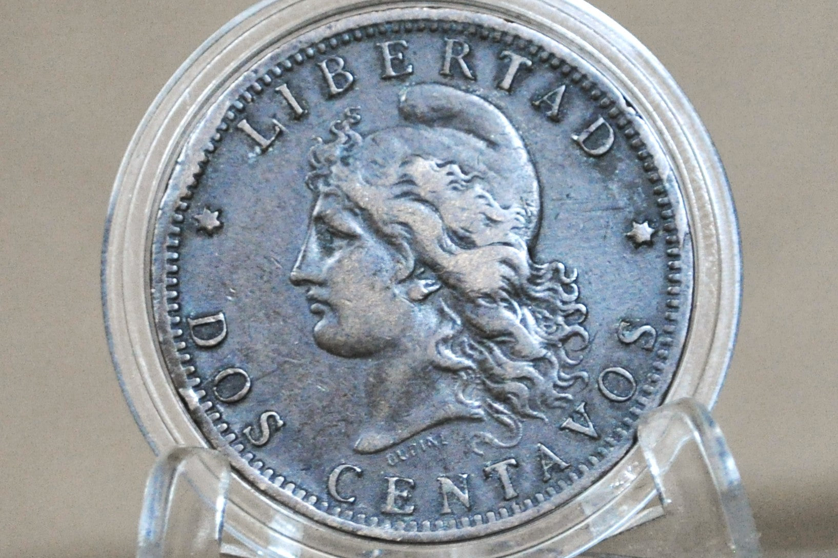 1890 Republic of Argentina Libertas Dos Centavos - XF - Beautiful Coin Design - 1891 2 Centavos Argentina, 2 Centavos Coin
