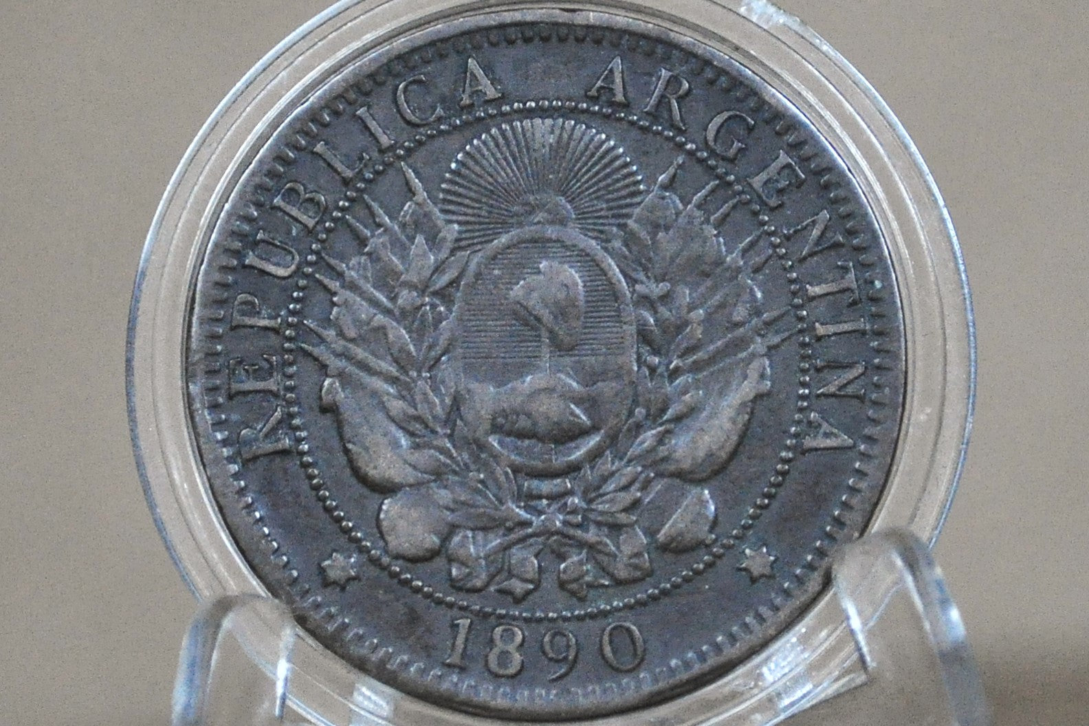 A historic coin from Argentina's early numismatic era, featuring iconic national symbols and a glimpse into the country's rich heritage.