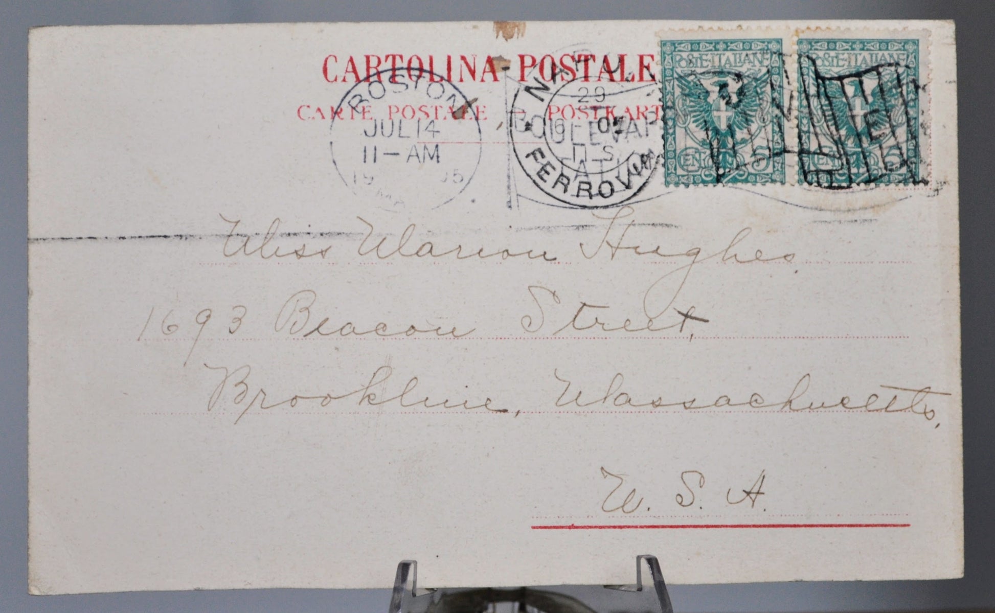 This listing features an Antique Capri l'Faraglioni Italy Coastline Artist Painting Postcard. This postcard was sent, stamped and postmarked July 14th, 1905. There is writing on the front and back of the postcard. The artwork on the postcard depicts the l'Faraglioni rocks on the Capri Italian coastline. The caption on the obverse of this card is printed in grey font color rather than the typical red color seen in other similar postcards, identifying that it is an earlier issue. The postcard has no identified manufacturer. Stunning antique card made by an artist from the early 1900s. Great condition. Amazing and unique find!