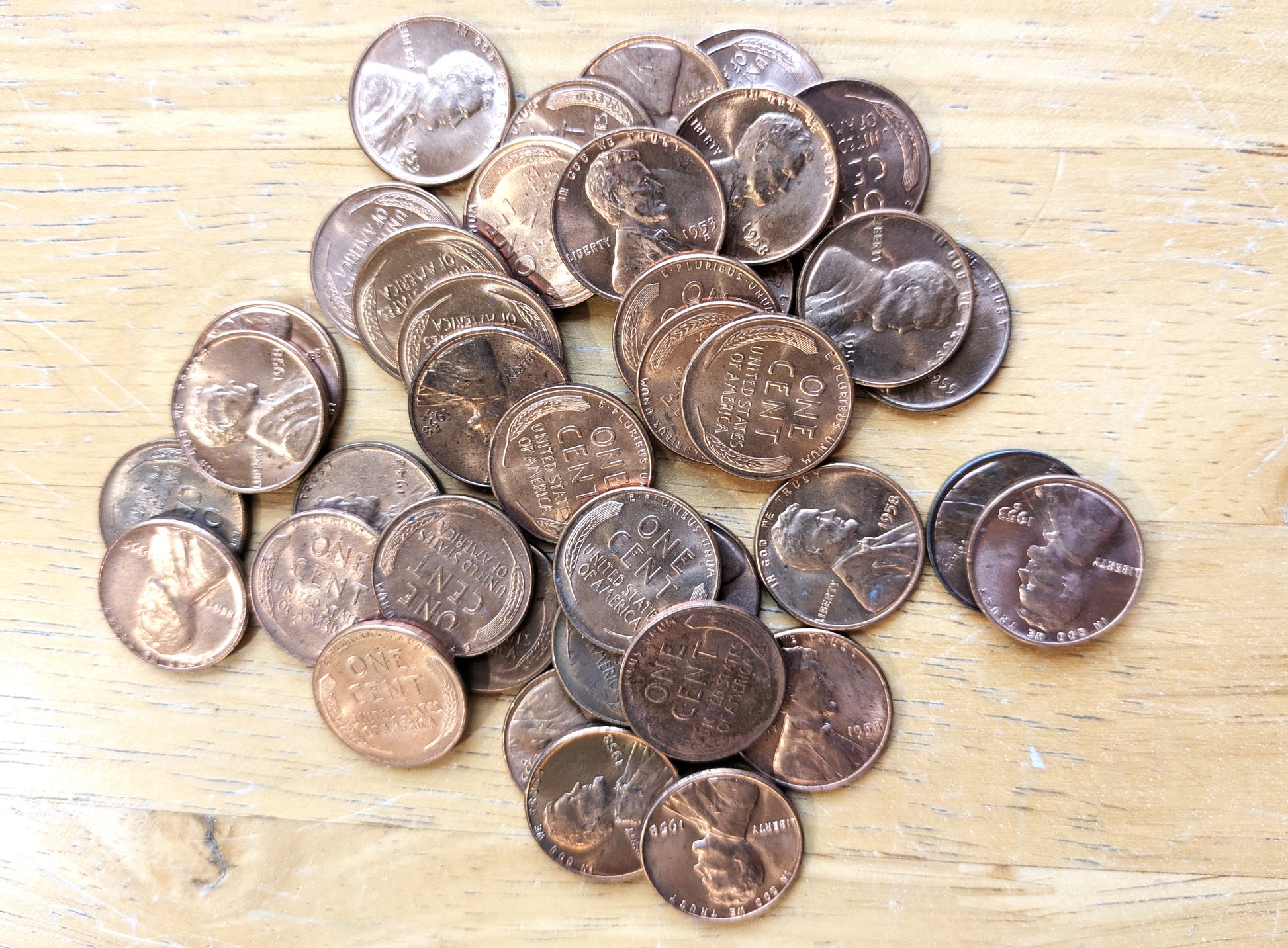 BU Wheat Penny Lot! - Qty 40 - Mixed Dates 1953, 55, 58, etc. Mint Marks - Check it out! Great Deal! Lot of Uncirculated Wheat Pennies