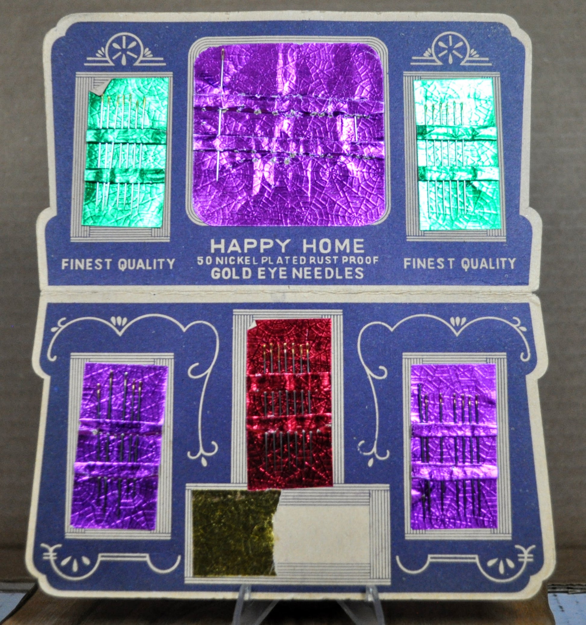 Hand-sewing and mending clothing was a common practice before the modern age of fast fashion, making sewing needles a necessary tool for most women before the late 20th century. Beginning in the late 19th century sewing needles would be sold in small paper folders called needlebooks. Most needle books featured illustrations of women and girls sewing together, mirroring the gendered culture surrounding sewing leading into the mid-20th century. Companies would produce these needlebooks as promotional gifts that would be given to customers. By the 1940s and 1950s most needlebooks were mass produced in Japan and distributed by companies as promotional gifts in the US.