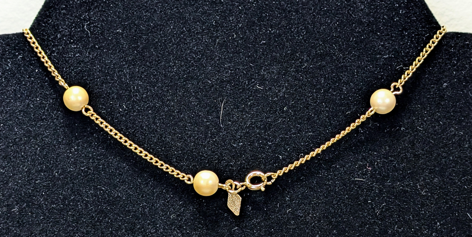 This listing is for the photographed Vintage Sarah Coventry Goldtone Faux Pearl Bead Long Link Necklace. Necklace chain measures approximately 35 inches in length, making for a great layering piece! Very long chain necklace with faux pearl ivory-colored beads. A charm near the clasp of this necklace is signed "Sarah Cov.", confirming the manufacturer of this piece. Stunning elegant vintage piece from a great company! Great layering piece for any collection!