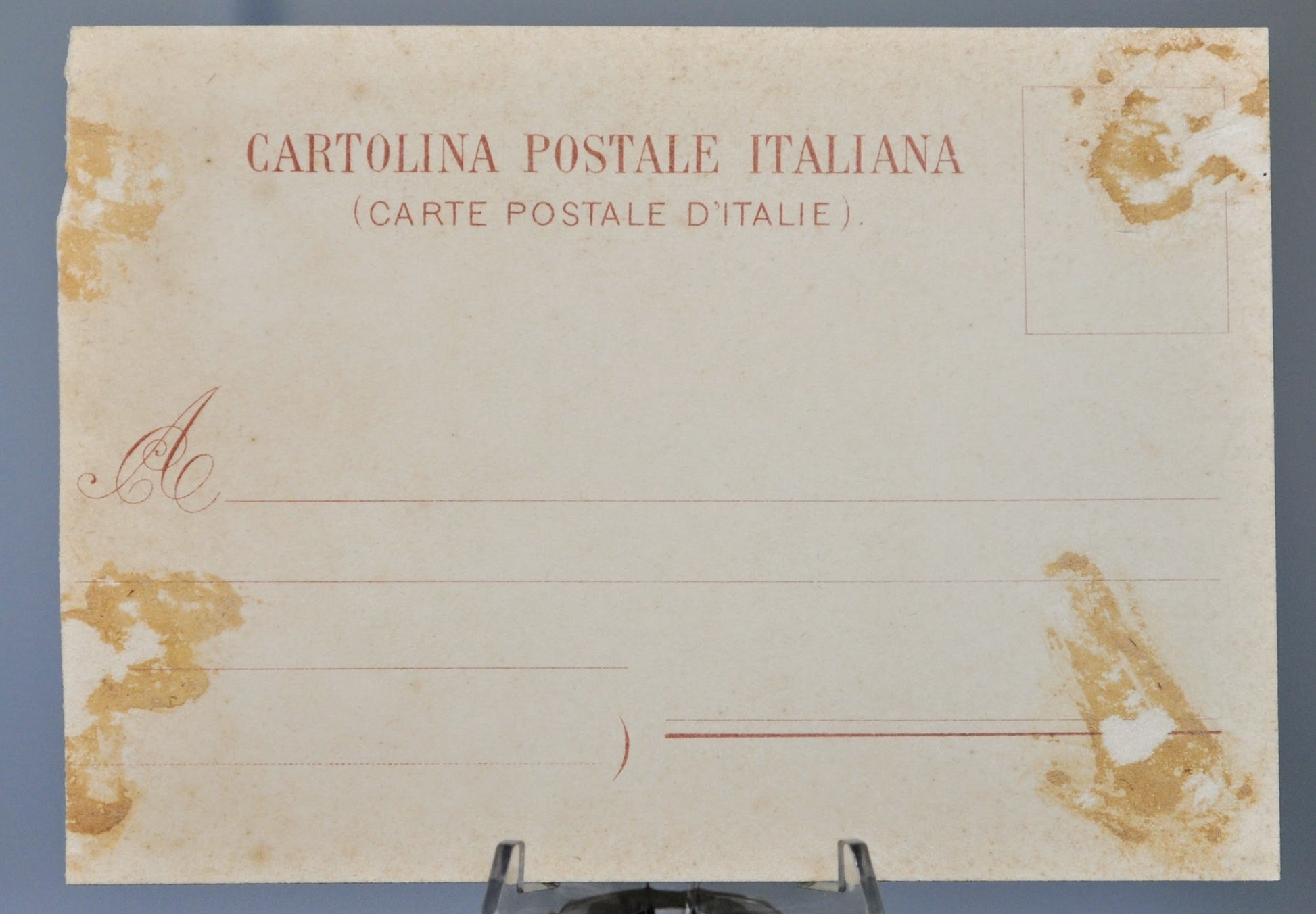 This listing features a Circa 1900s Antique Pescatori nel Golfo di Napoli Italy Artist Painting Postcard. This postcard dates to before 1907 as identified by the lack of a divider on the back of the postcard. The dividing line on the back of postcards was only allowed to be added to postcards starting in 1907. The lithograph shows several fisherman boats sailing on the Gulf of Naples, Italy. The postcard was manufactured by Richter & Co. as identified by the text on the bottom edge of the card. Stunning antique card made by an artist from the early 1900s. The top of this postcard is cropped. Amazing and unique find! Richter & Co. card number 400.