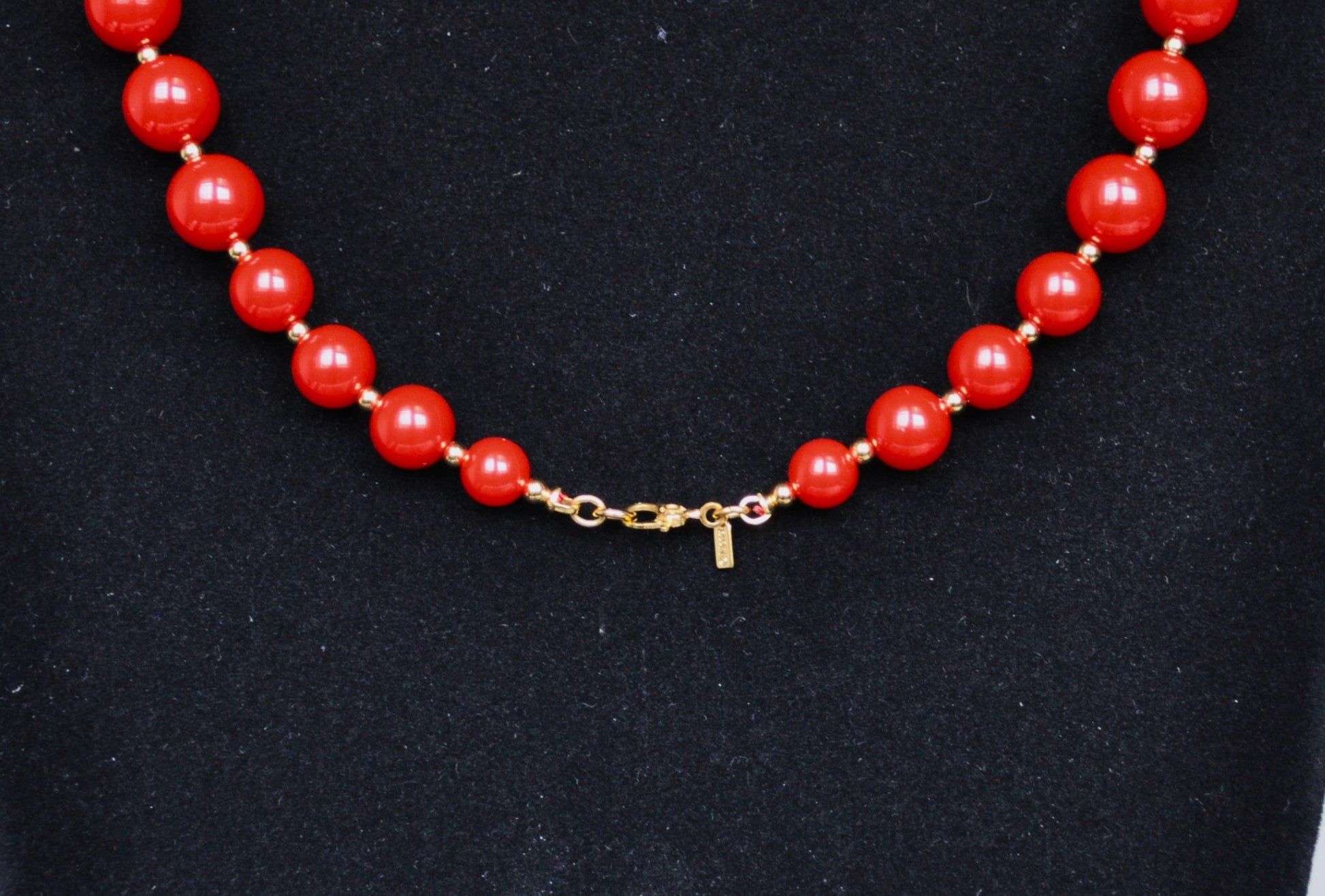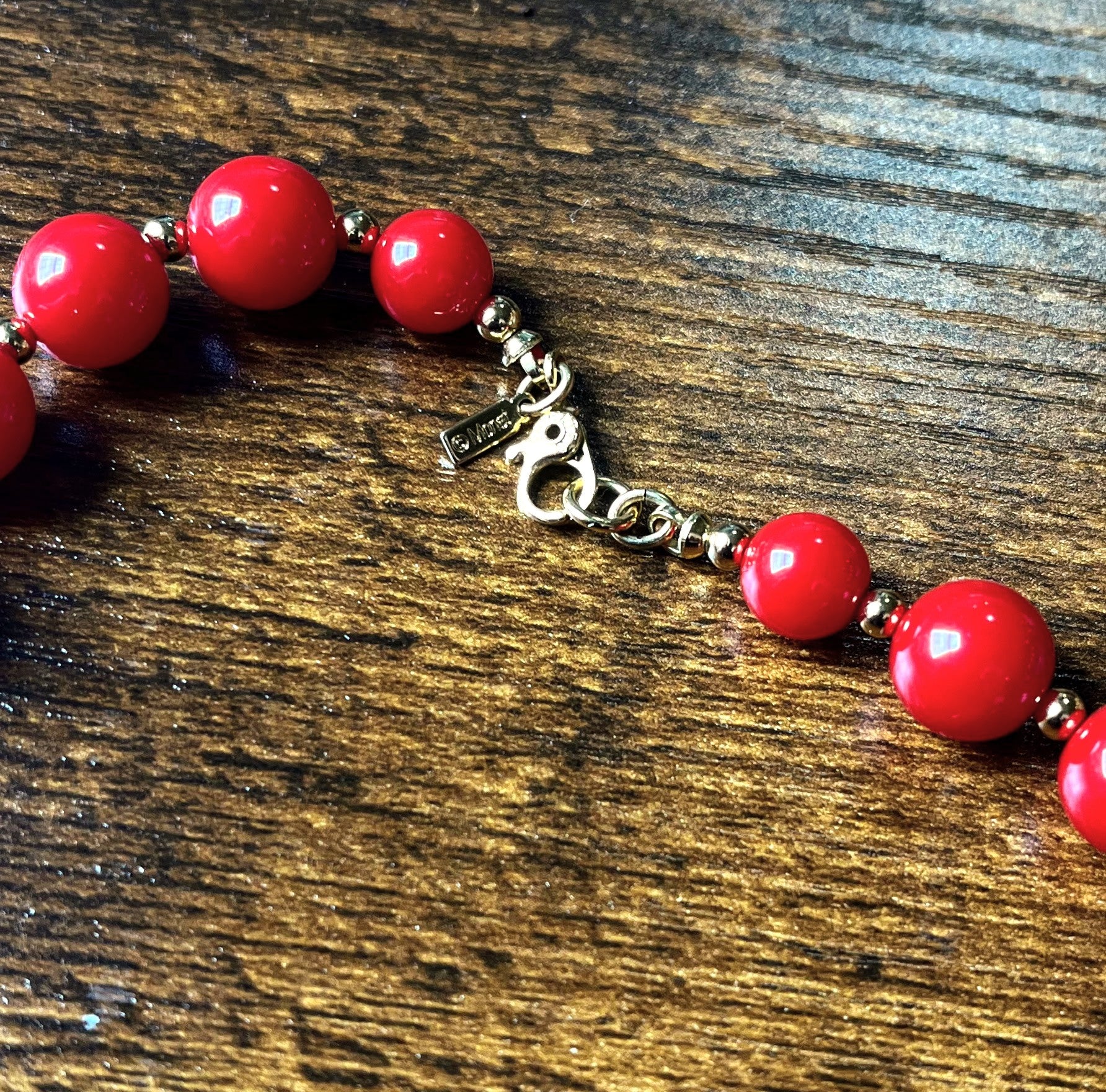 Vintage Monet Goldtone Red Lucite Beaded Necklace - 19 Inches - Circa 1950s Monet Signed Eclectic Red Bead Choker Necklace