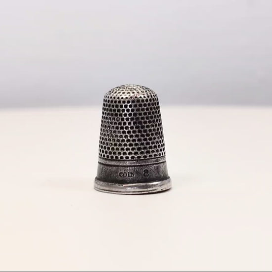 This listing is for the photographed Antique Coin Silver Thimble with a Classic Blank Design. This thimble has no monograms or prominent designs, giving it a classic look. Very cool piece. Stamped size 8 on outside. On the flat rim of the thimble there is stamped text saying "COIN", which identifies that the thimble was made with "Coin" silver, or 900 silver (90% purity). Great classic vintage piece in great condition! Perfect addition to any collection.