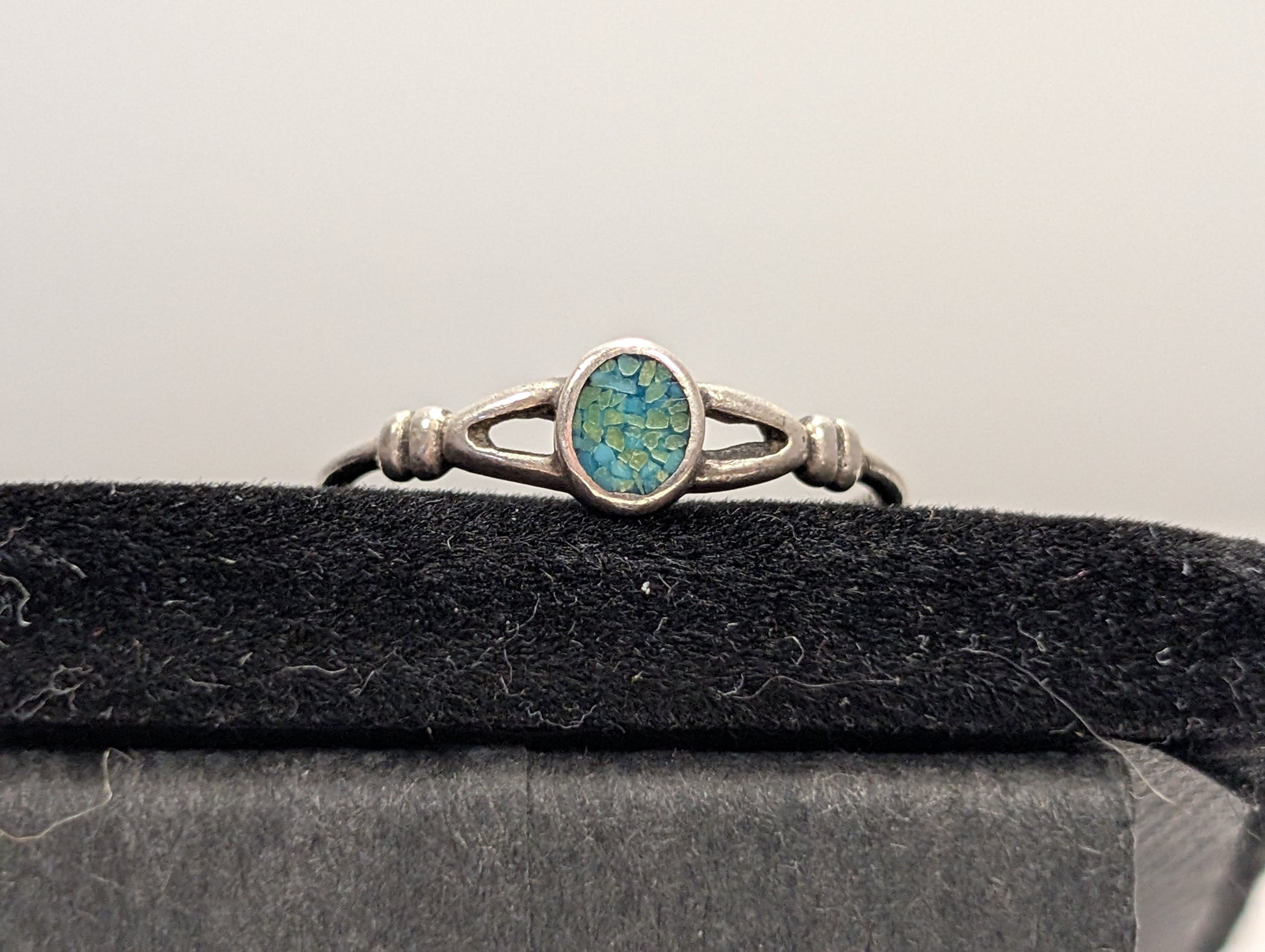 Dainty Sterling Silver Mosaic Turquoise Ring - Size 5.5 - Stamped and Tested Sterling Silver - Open Gallery