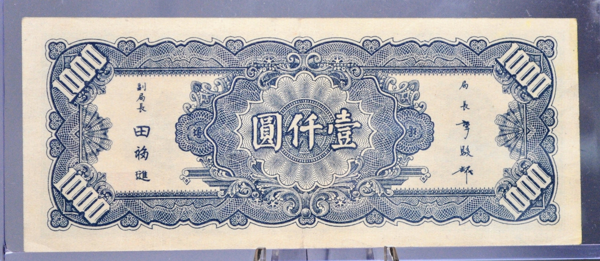 1945 Central Bank of China 1000 Yuan Note - Sun Yat-Sen Type - Post-WW2 Issue - Rare 1945 Chinese One Thousand Yuan Bank Note - P#298