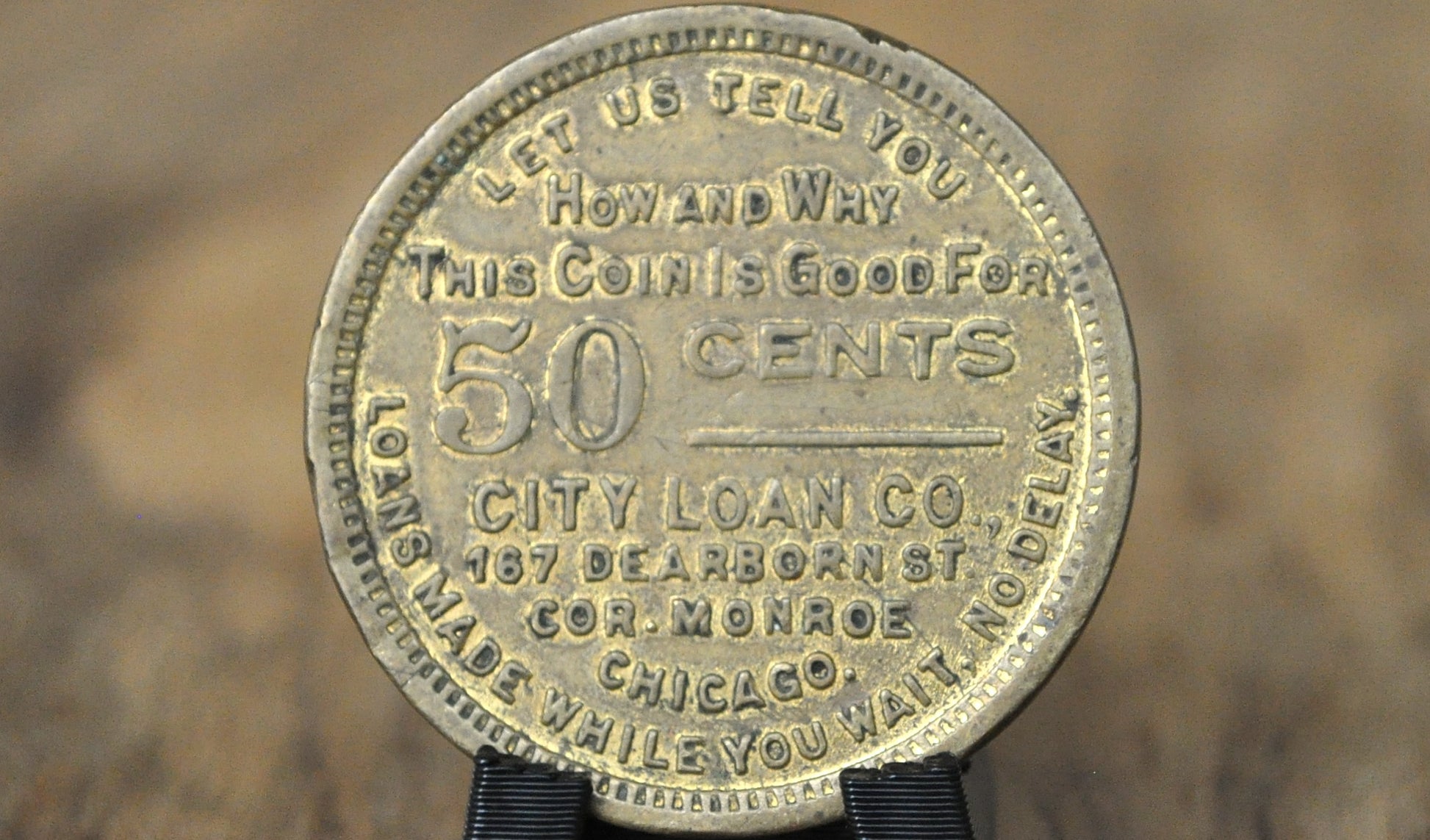 Chicago City Loan Co. 50 Cents Good For Token - "Trust Men and They Will Be True To You" Chicago Banking Promotional Token