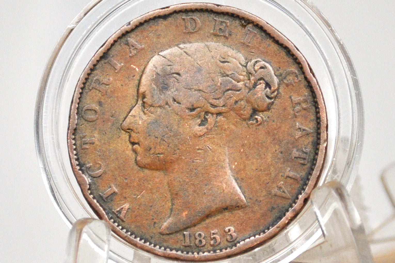 1853 Great Britain Halfpenny - F/VF Details - UK 1/2 Penny 1853 - Bronze, Queen Victoria