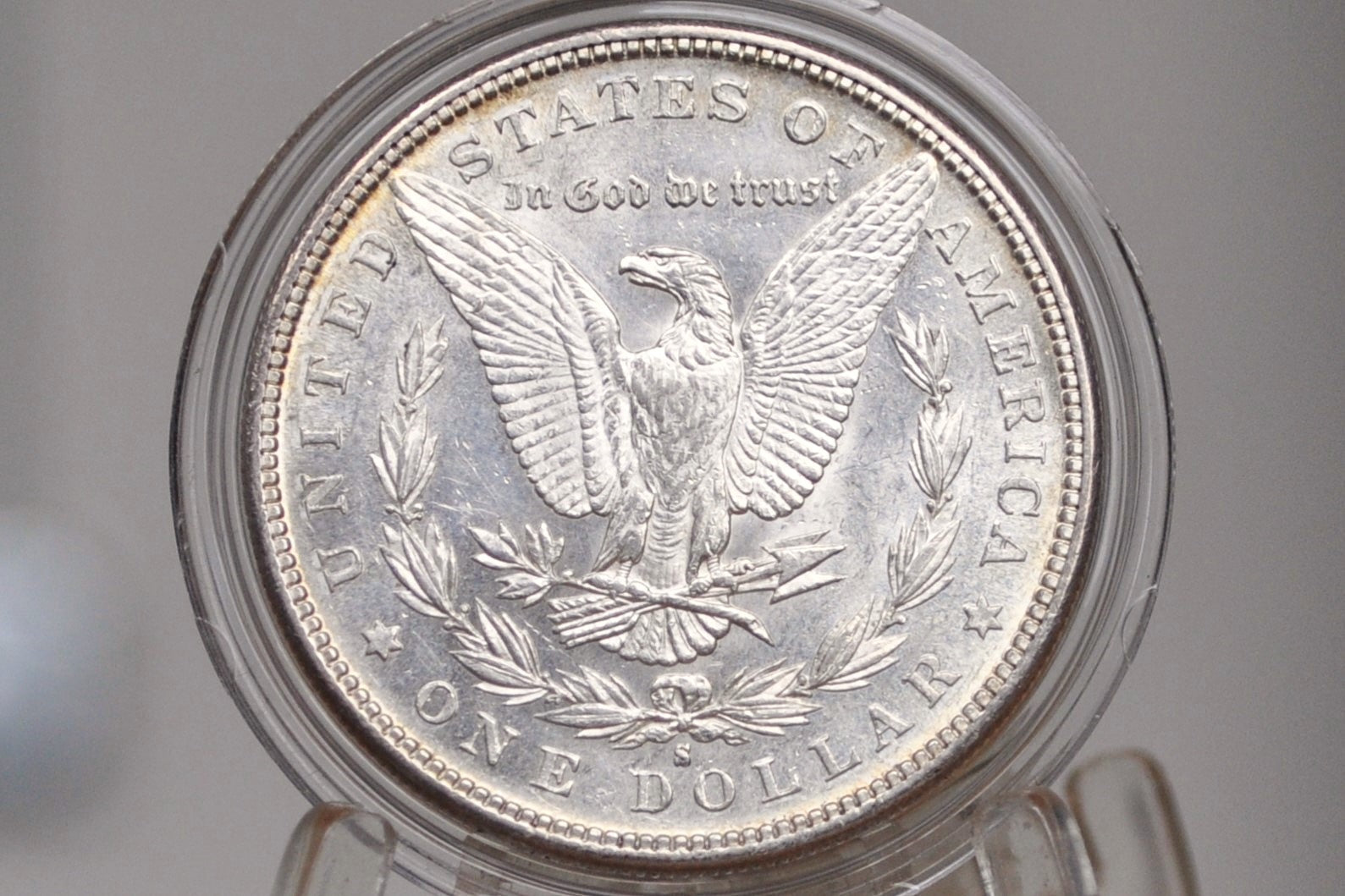 This listing is for the photographed 1885 S Morgan Silver Dollar. Uncirculated, toned. Great coin for a collection. S mint mark for the San Francisco Mint.