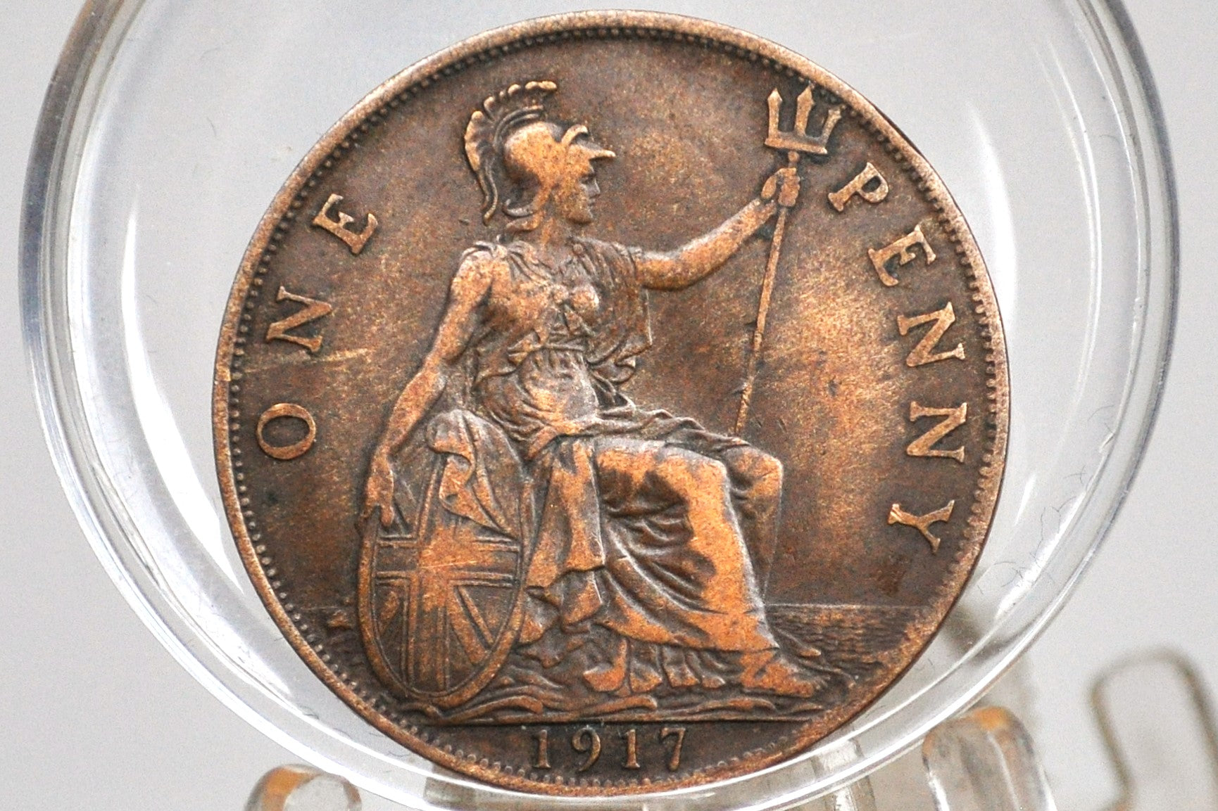 1917 Great Britain One Penny - Choose by Grade / Coin - UK Penny 1917 - Rare Find in this condition