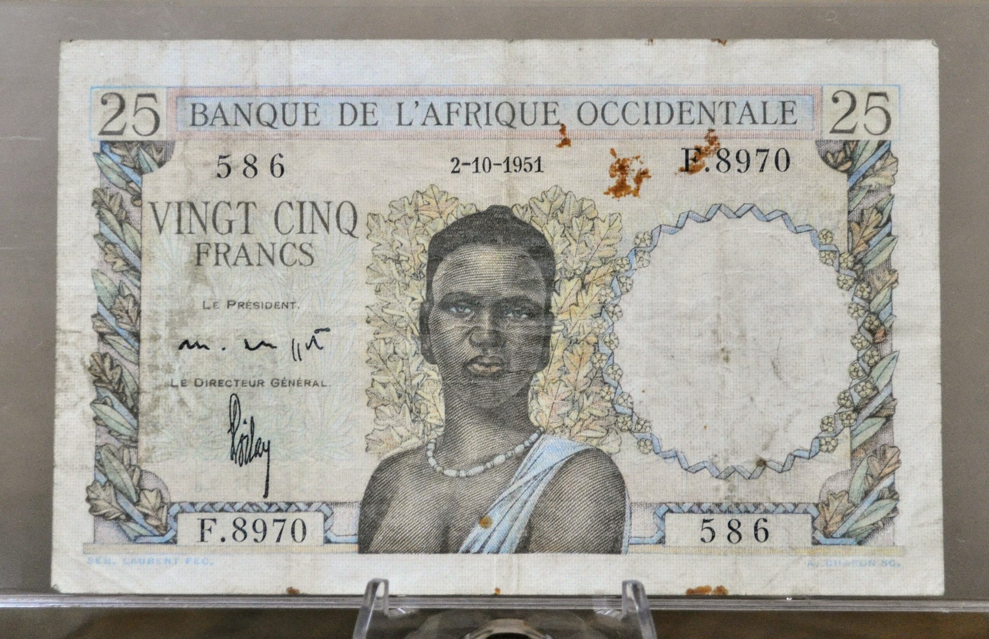1951 Bank of West Africa 25 Franc Banknote - 2-10-1951 Rare Date - Rare 25 Francs Banknote Banque de L'Afrique Occidentale - P#38