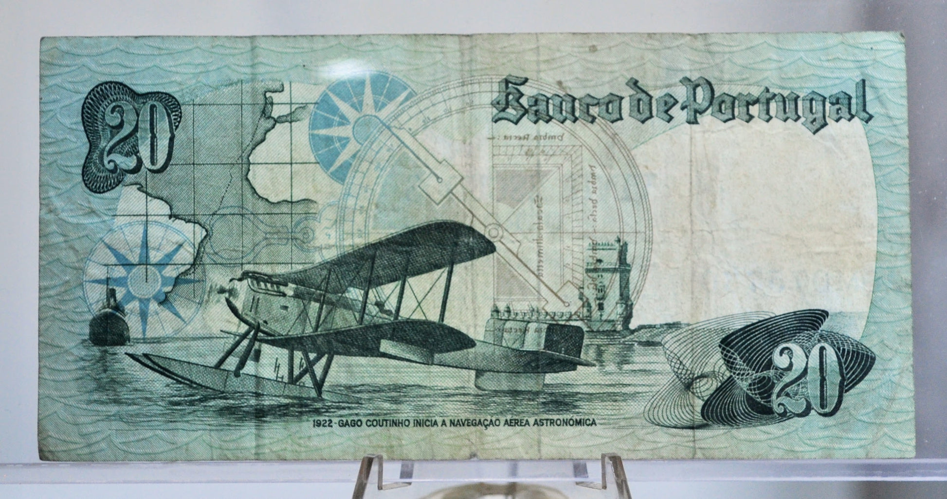 This listing is for the photographed 1978 Banco de Portugal 20 Escudos Banknote. Issued on October 4th, 1978, in Lisbon, Portugal. This note was the ninth (9th) printing issue of this series of Portuguese Escudos notes. The obverse of this note depicts a portrait of Admiral Gago Coutinho on the right end. The reverse shows a depiction of the Lisbon-Rio de Janeiro flight with a hydroplane at the center and the Belem Tower in the background. Choice of grade/condition. Great piece of history and an excellent addition to any collection. P#176b (Pick Number 176b).