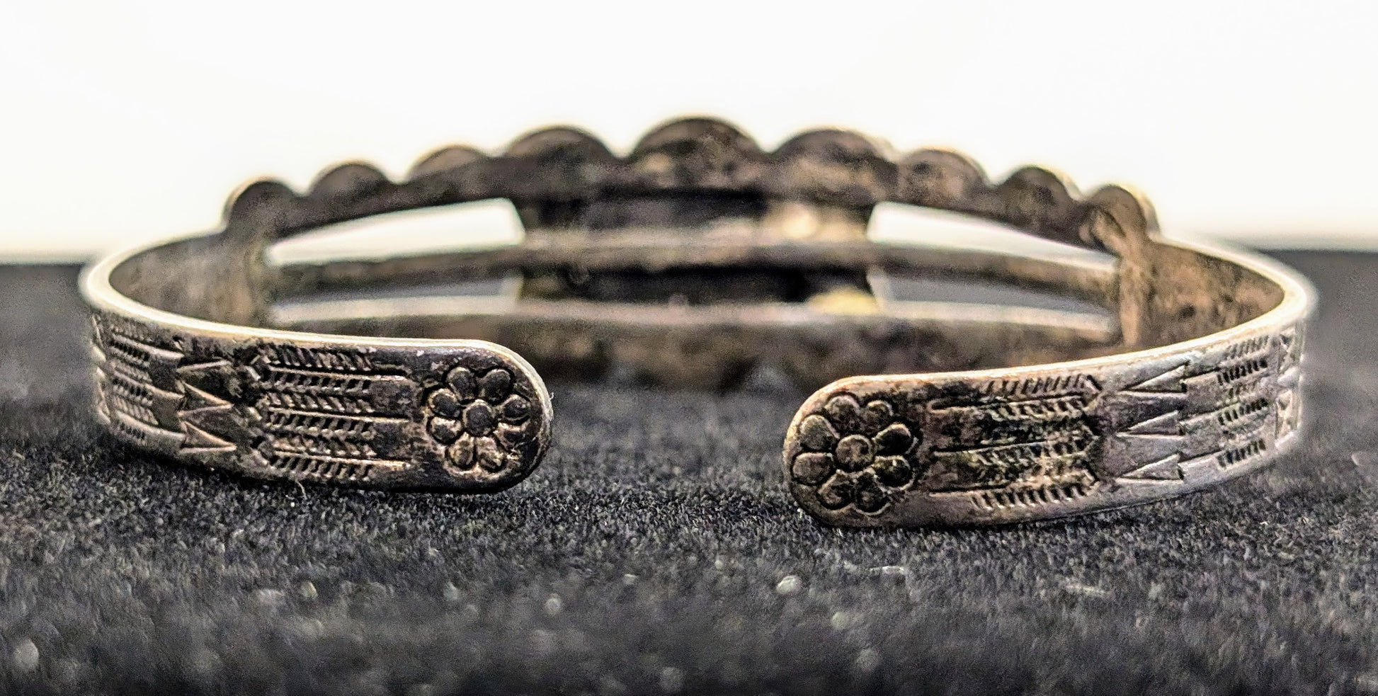 Amazing Vintage Silver Toned Native Southwest Turquoise Cuff Bracelet - 6" Length - Vintage Intricate Navajo Inspired Designed Bracelet