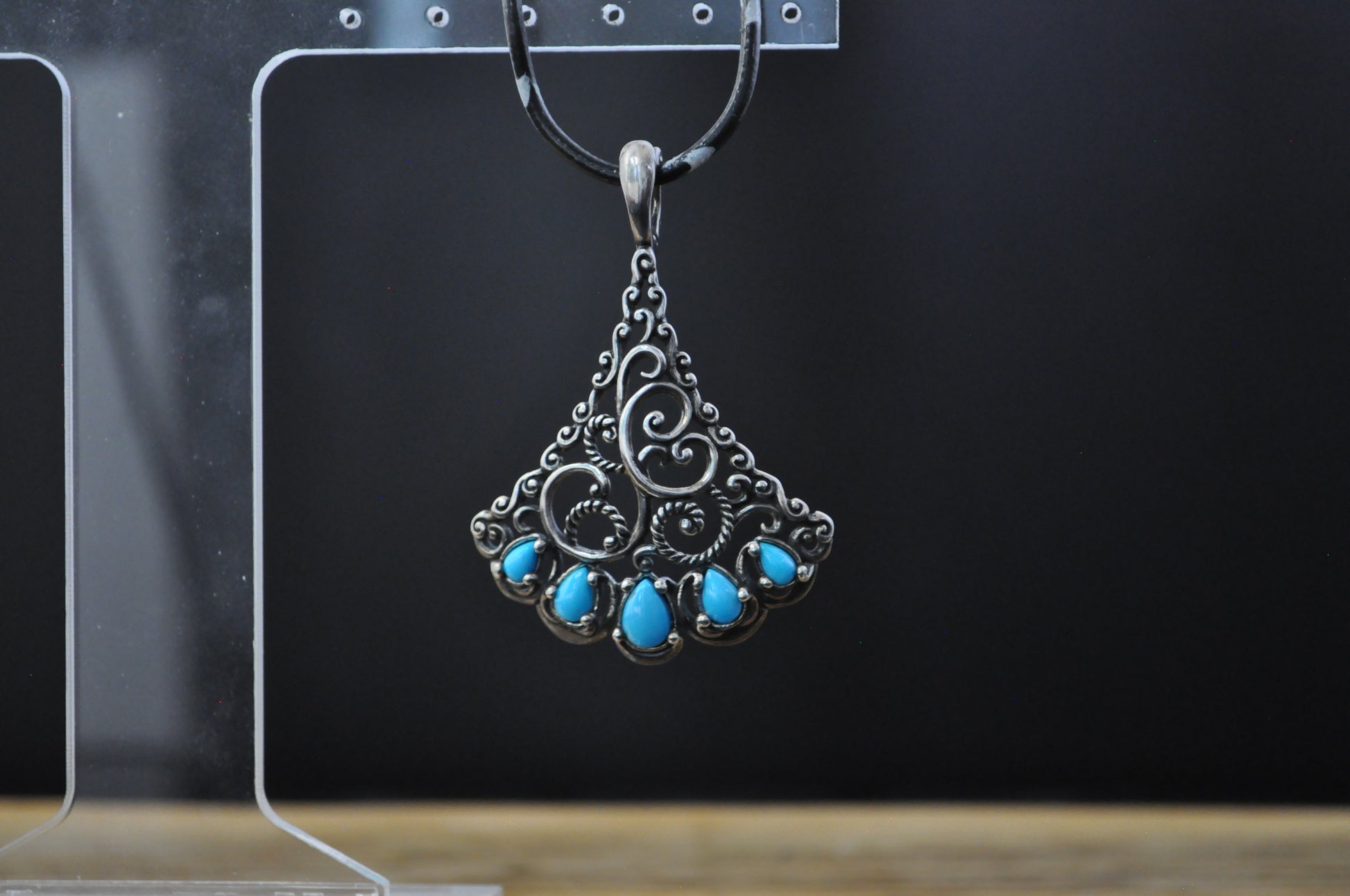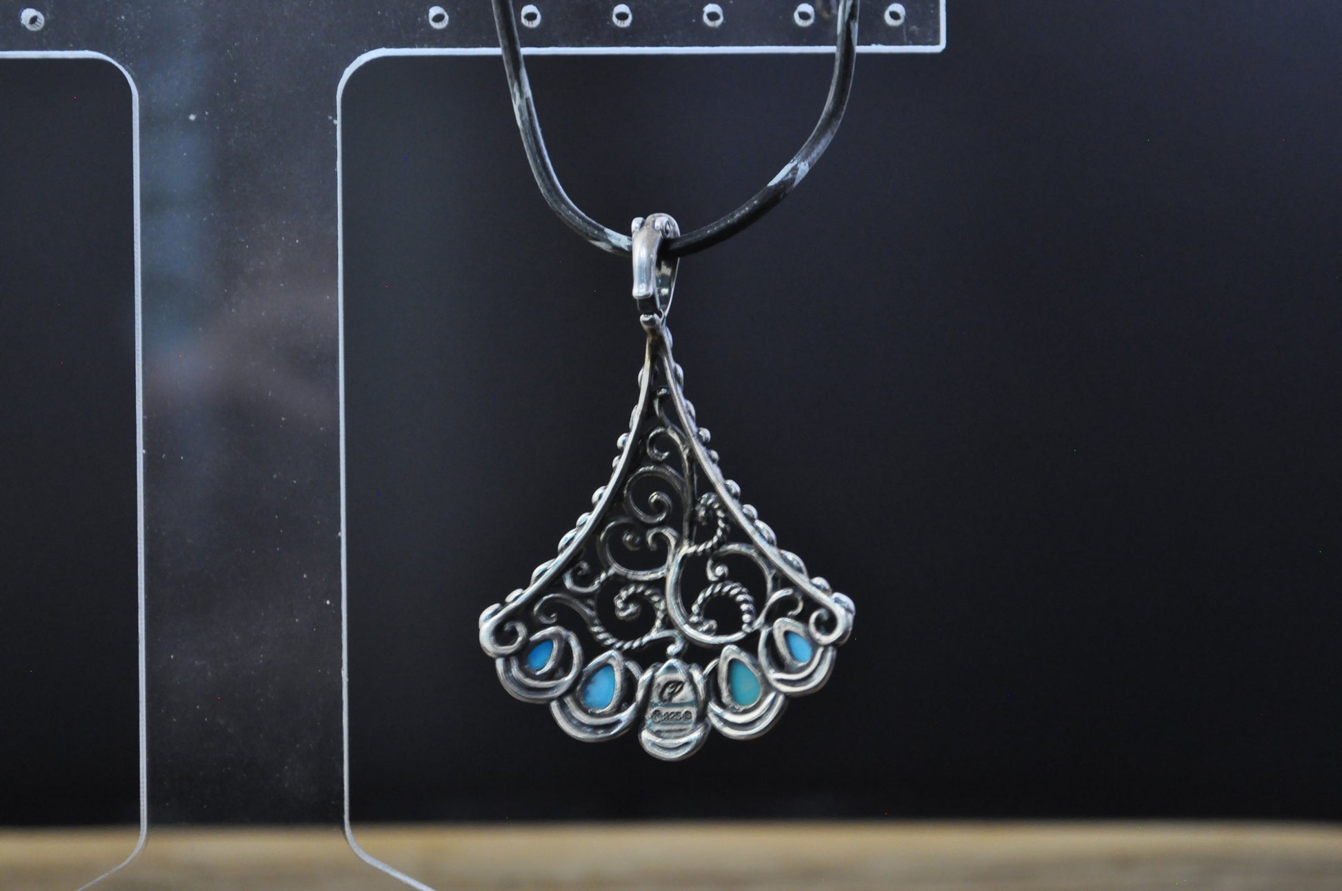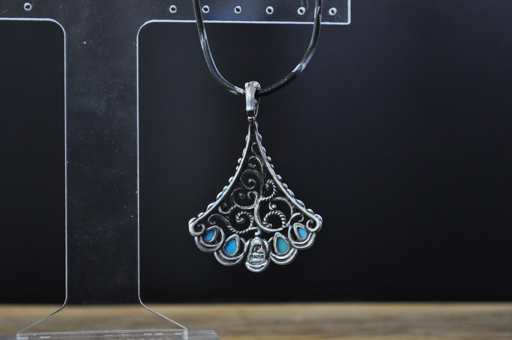 This listing is for the photographed Carolyn Pollack American West Turquoise Enhancer Pendant. Beautiful sterling silver turquoise enhancer pendant featuring 5 turquoise stones and a swirling vine like design as part of Carolyn Pollack's Sleeping Beauty Collection. Stamped on the back of the pendant is "925" and the Carolyn Pollack hallmark. The Navajo believed turquoise was a sacred stone used for protection from evil, good fortune, and health. The turquoise blue is very special in Navajo culture resembling the sky and water. Beautifully designed pendant that reflects Naive American spirituality and design!