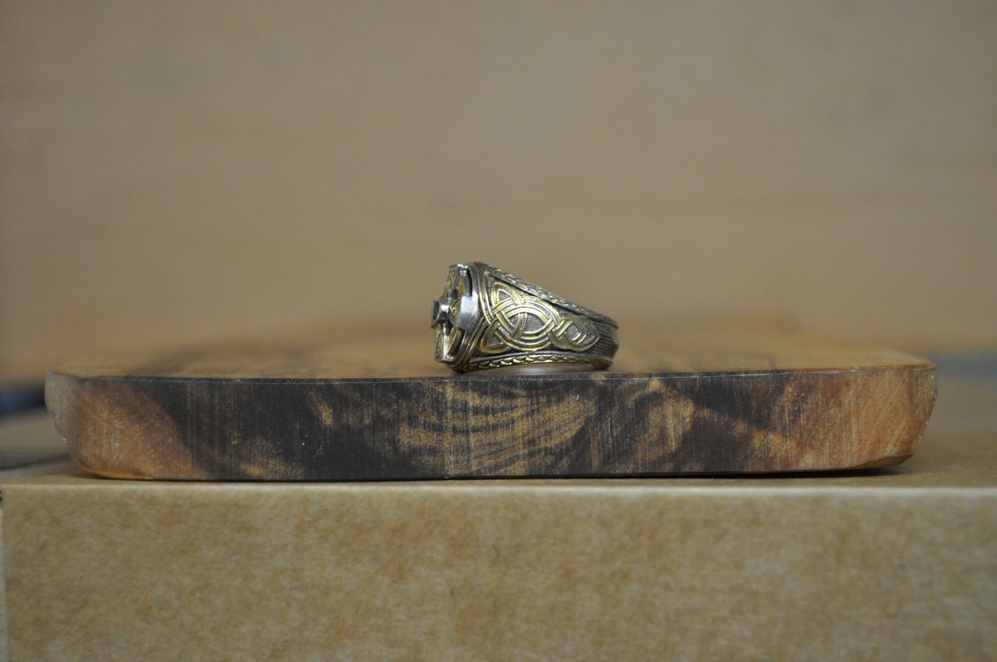 Franklin Mint Emerald Studded Celtic Knot/Triquetra - Size 11.5 - Stamped and Tested Sterling Silver - Irish Jewelry