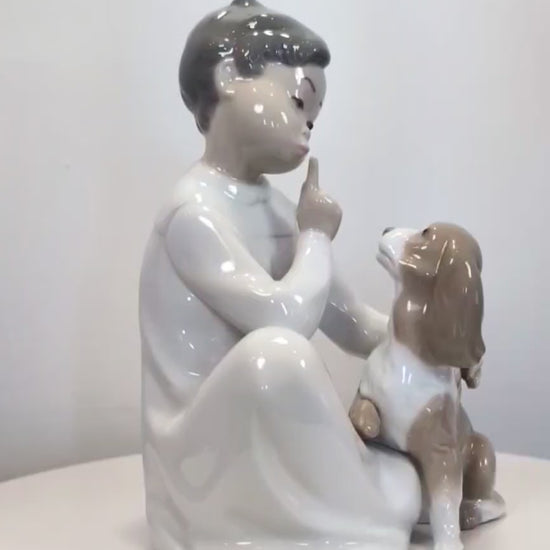 Up for sale is the pictured LLADRO Boy With Dog Glossy #4522 Children in Nightshirts Collection - Like New- No Box