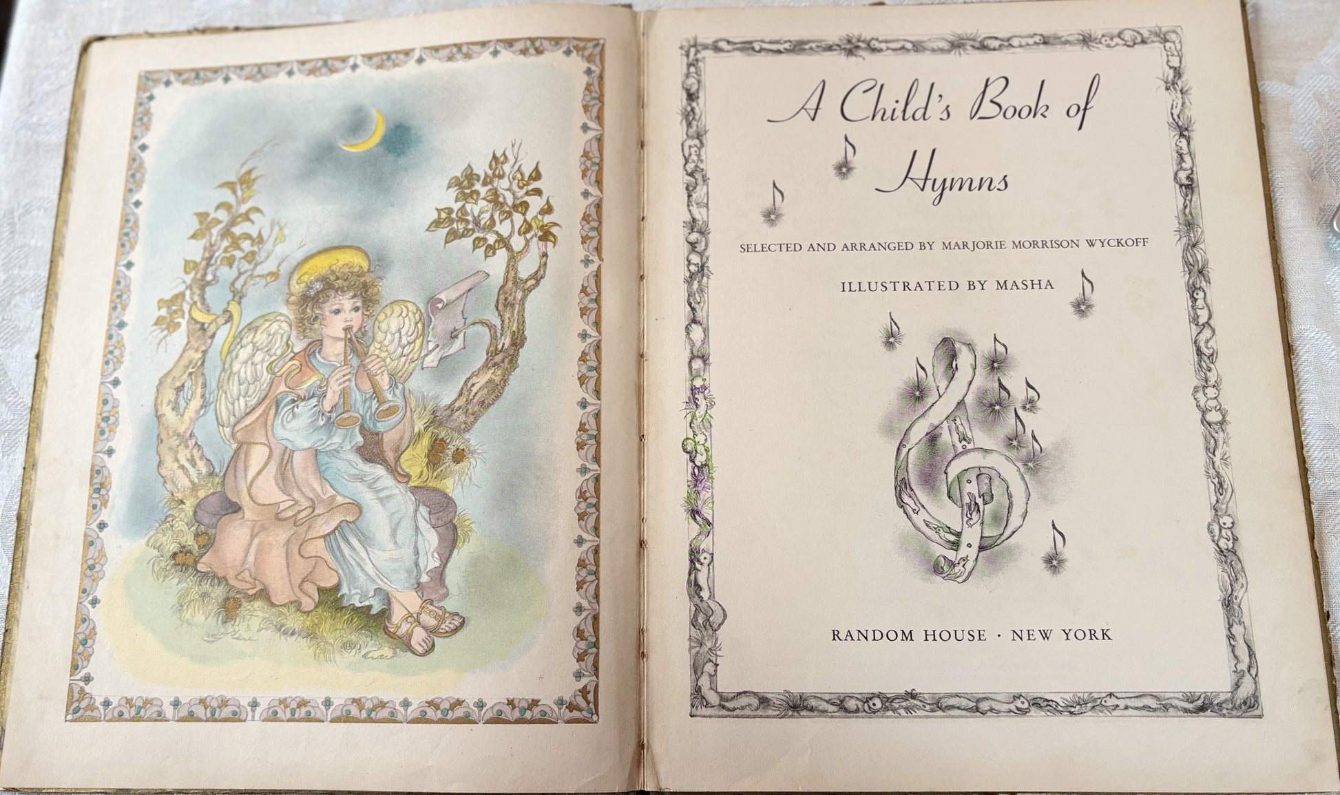 A Child's Book of Hymns 1945 Masha Illustrated Vintage Hardcover Book - Masha 1945 A Child's Book of Hymns Vintage Religious Book Gift