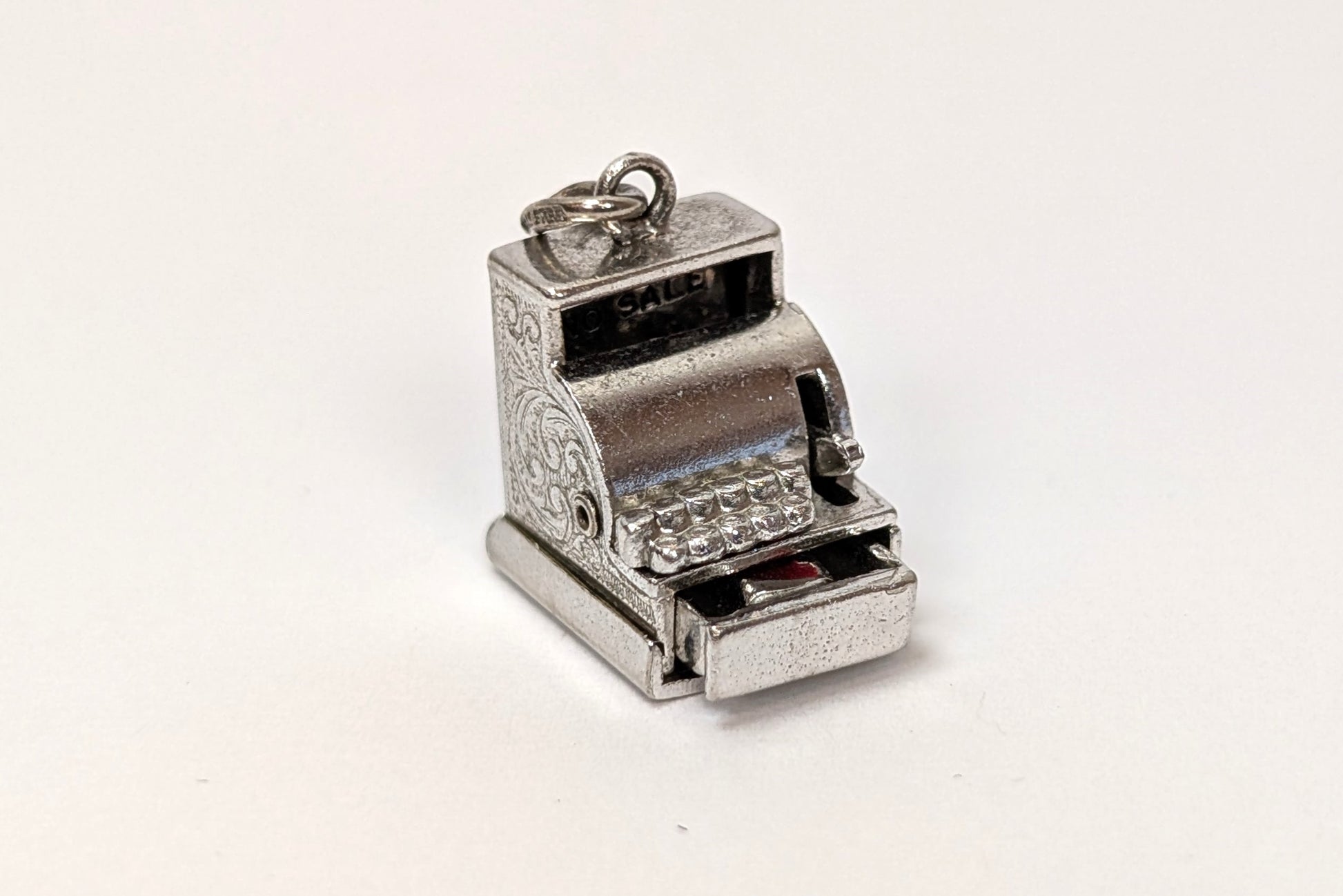 This listing is for the photographed Sterling Cash Register Charm! Intricate Design made of sterling silver. The drawer opens and closes! Super cool!