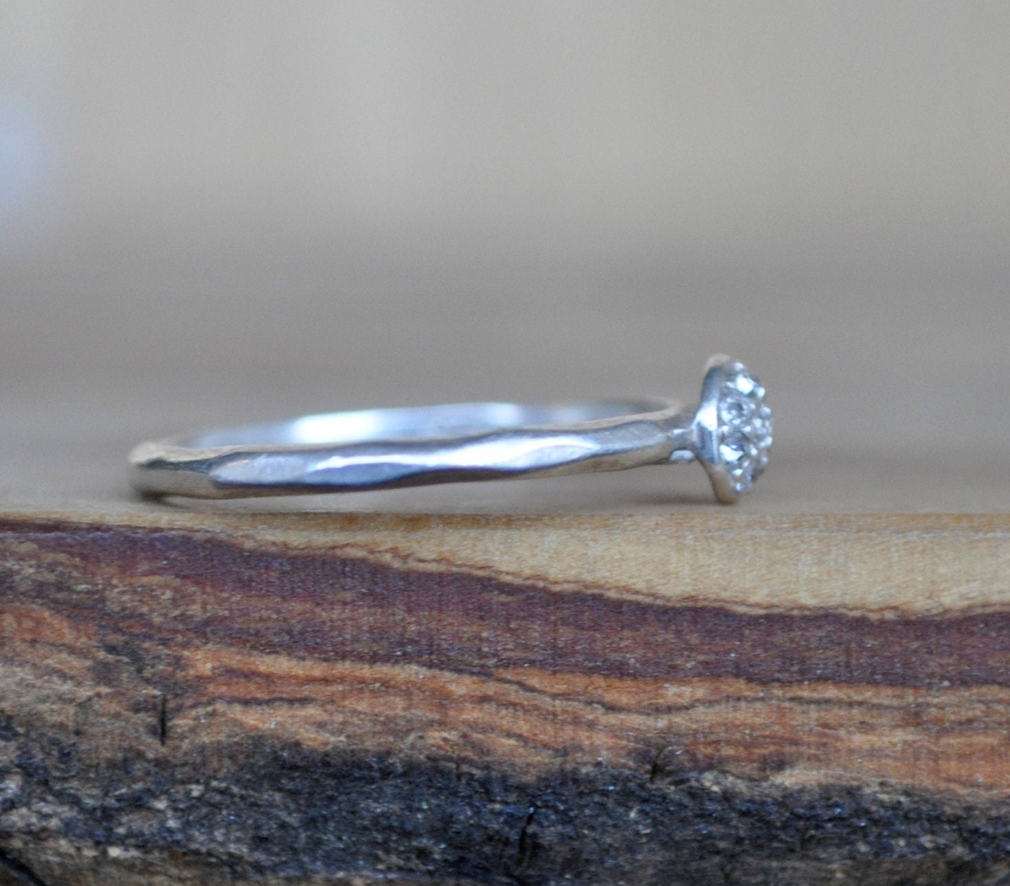 Sterling Silver Ring - Size 6 Ring Size 6 (16.5 MM Band) - Simple Design with Cubic Zirconia Stones - Vintage Rings Silver