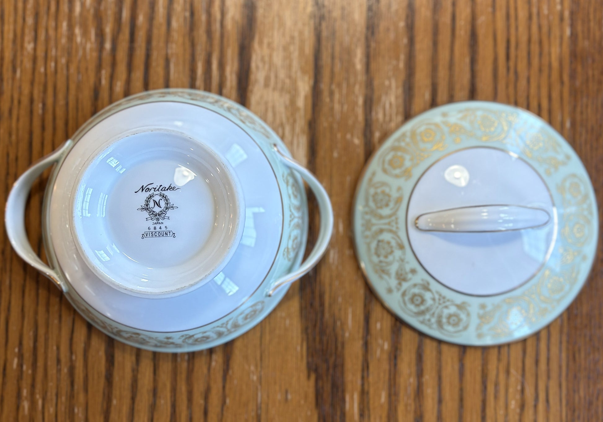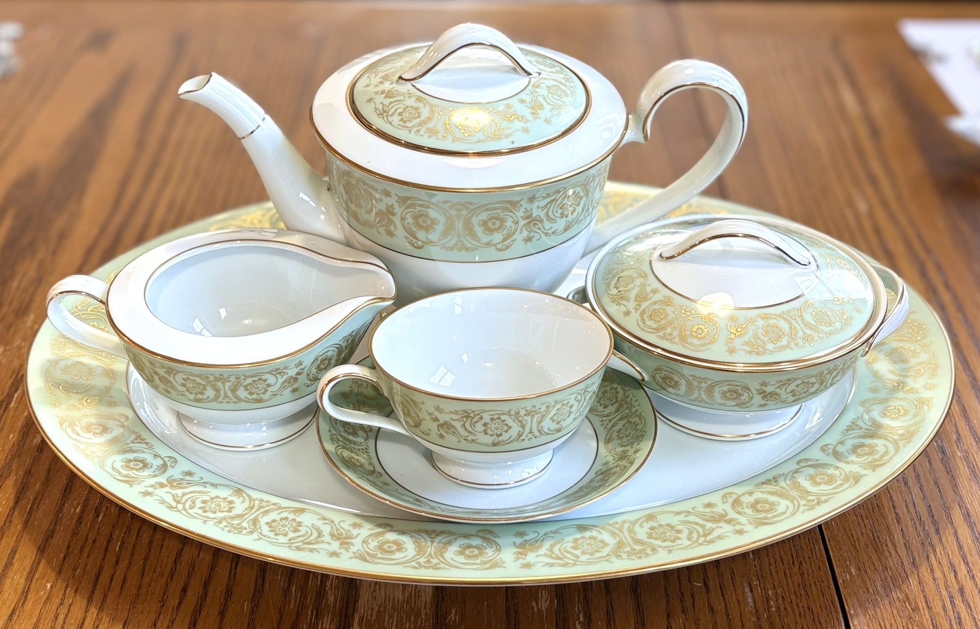 Massive Vintage Noritake Fine China Dinnerware Set 137 Pieces Raphael Pattern - Noritake Japan Fine China 130+ Pc Set: Viscount, Gold Green Scroll