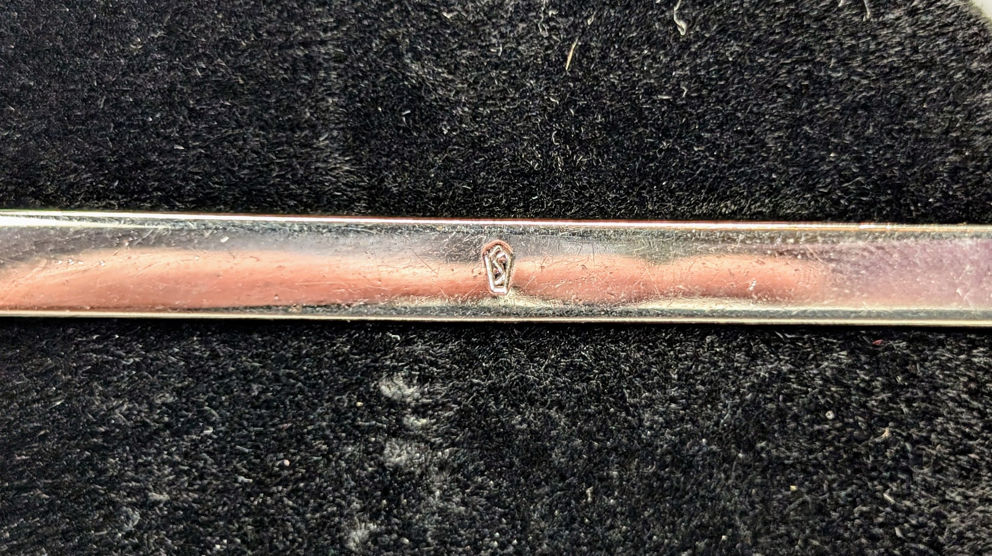 Funky Swank Silvertone Music Notes Tie Bar Clip - 3" Length - Vintage Swank Silver Treble Clef Musical Design Tie Clip