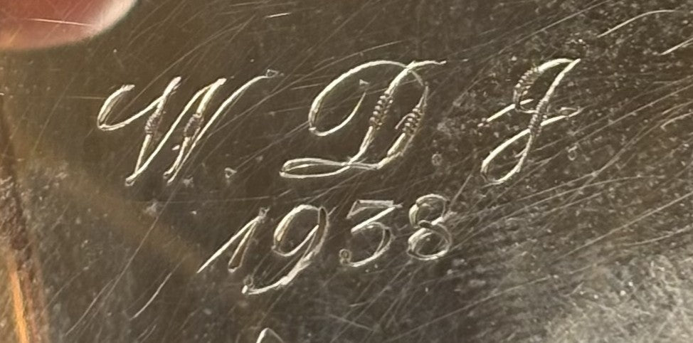 This listing is for the Antique Waltham 10k Gold Filled Pocket Watch Custom Engraved "1938, W.D.G." This is a beautiful, historically rich antique Waltham pocket watch, confirmed to be in running and functional condition, but might require some repairs due to age and wear and the hours hand can be delayed at some points but given its age, the condition is stunning. This specific timepiece dates back to approximately 1900, based on its serial number (9,549,559), and features several unique customizations that tell the story of its long life. It houses a high-grade 17-jewel mechanical movement within a classic 10k gold-filled case. The watch carries significant character through its various inscriptions, including multiple repair marks documenting decades of professional maintenance, as well as a custom floral design and initials on the case back, and an internal date mark of 1938. This watch is ideal for a collector who appreciates timepieces with a documented history and unique personalized aesthetics, or for someone seeking a functional, elegant antique pocket watch for everyday enjoyment. Beautiful Antique Find!!