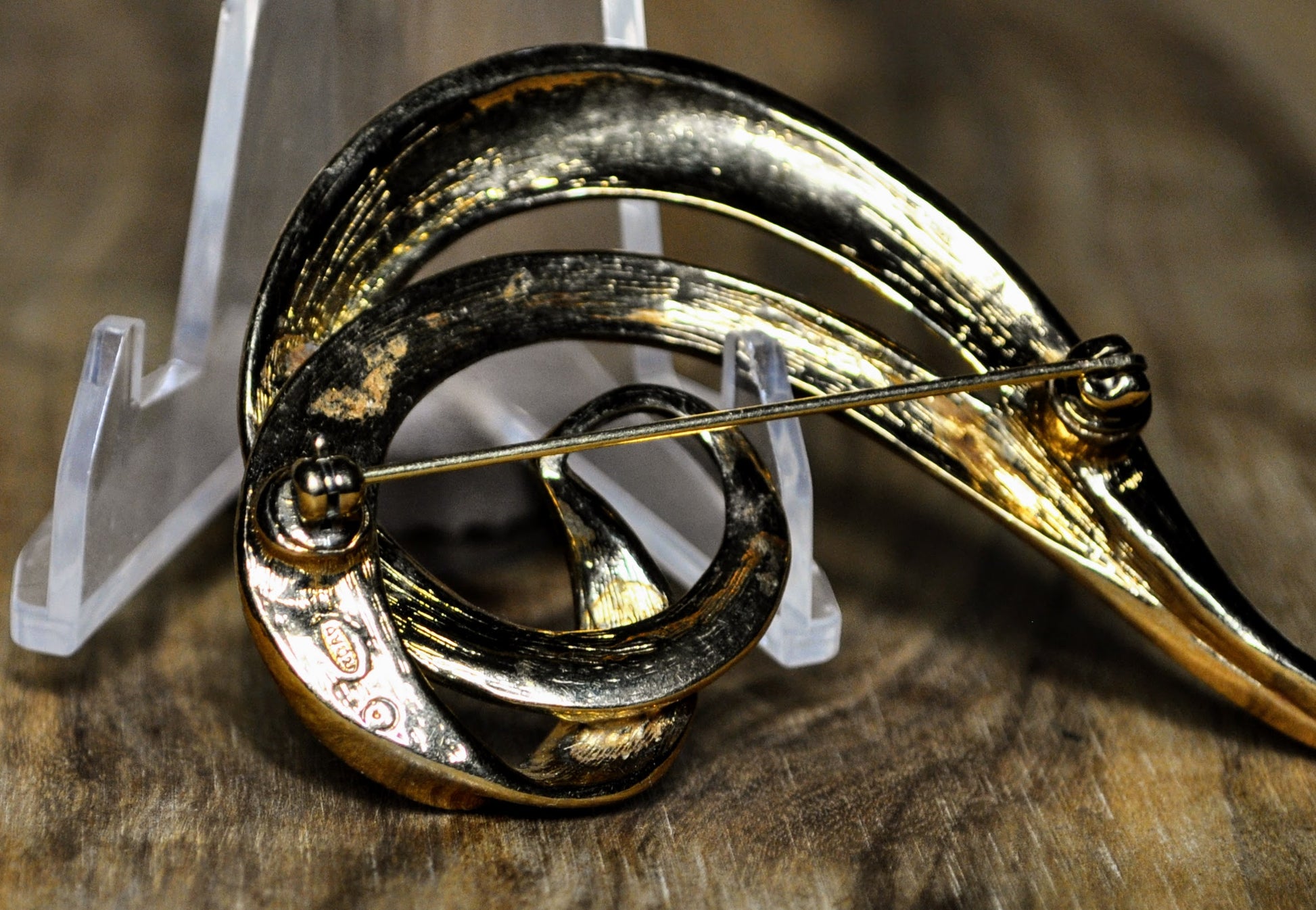 Stunning Avon Gold Toned Large Swirl Brooch - 3.25 Inches Long - Vintage Avon Signed Gold Pin
