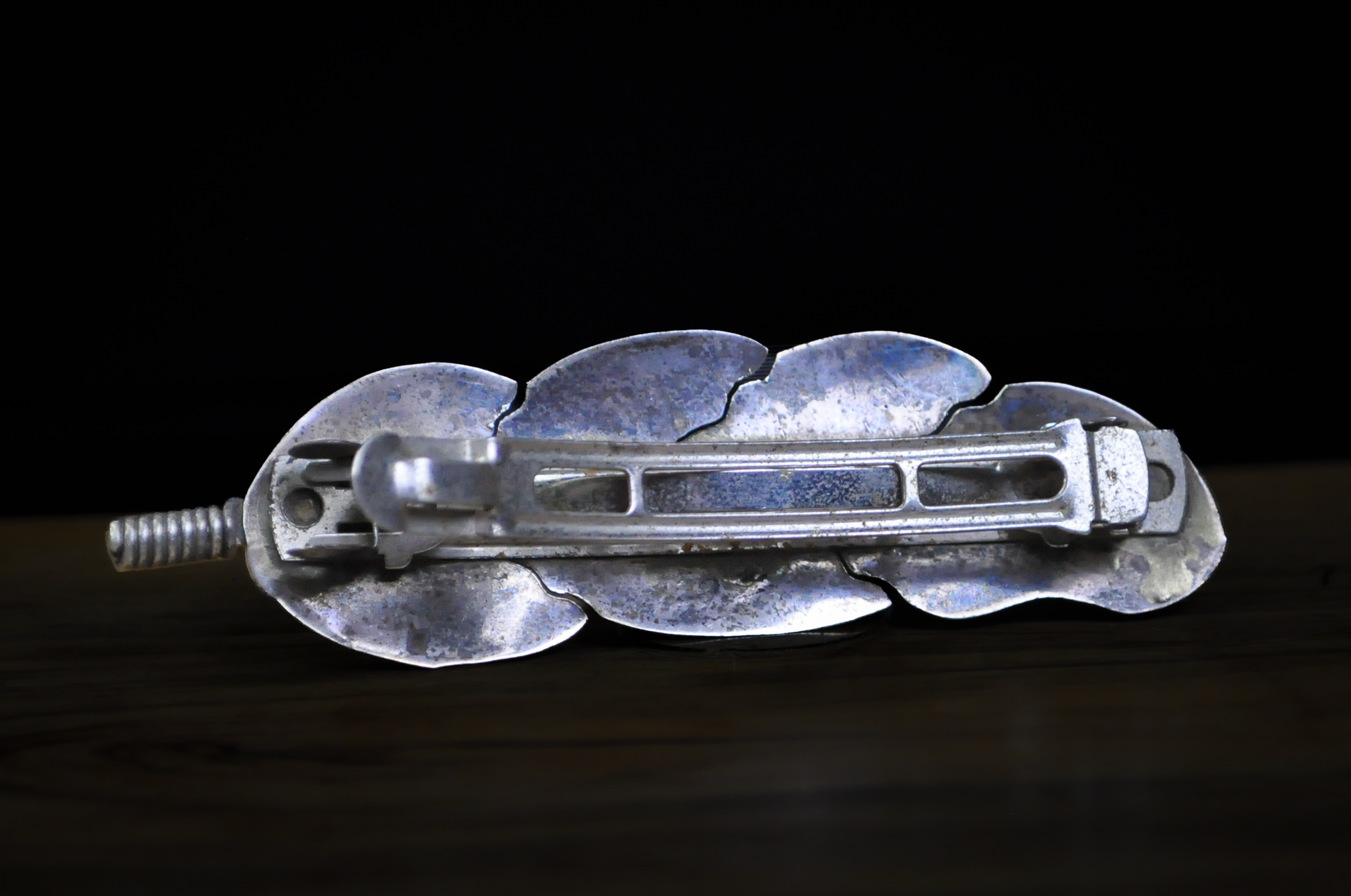 Handcrafted Southwestern Sterling Silver Eagle Feather Hair Clip Turquoise Stone Accent - Antique Eagle Feather Sterling Hairclip Turquoise Stone