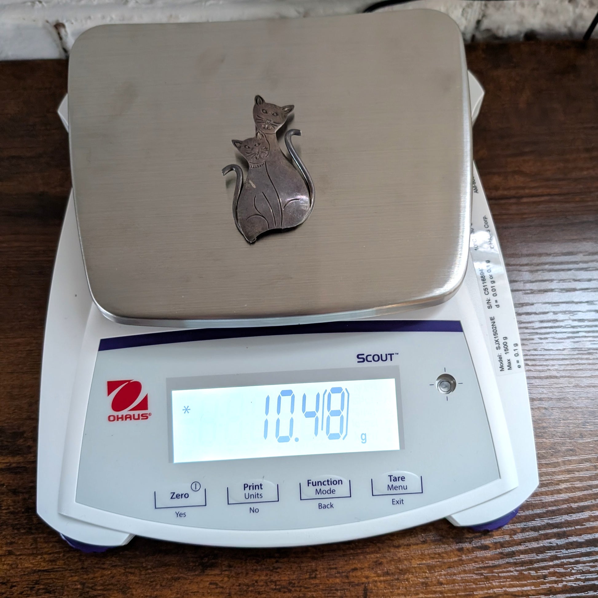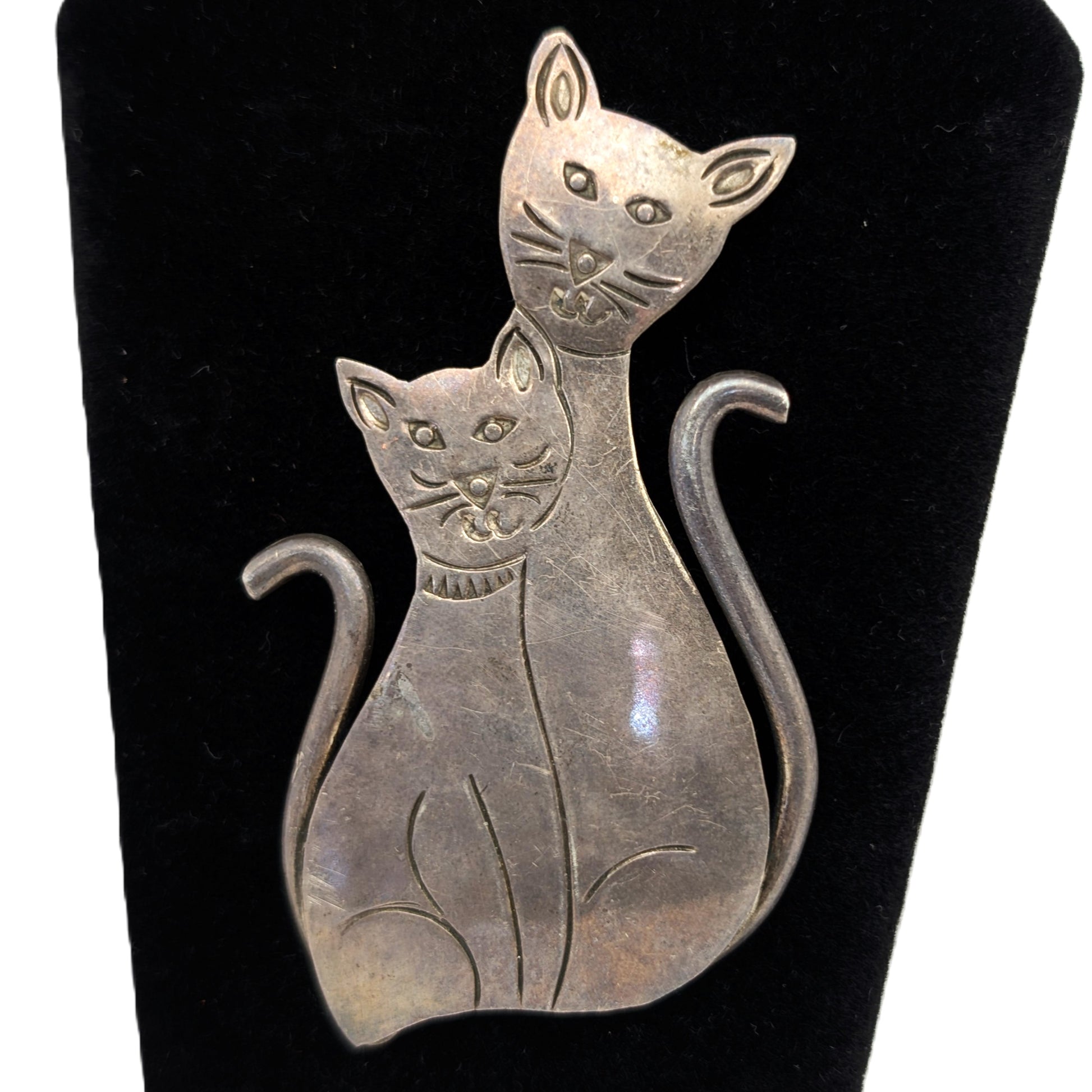 Vintage Large Sterling Cats Pin - 925 Silver - 10.48 Grams - 2 1/2+ Inches Tall