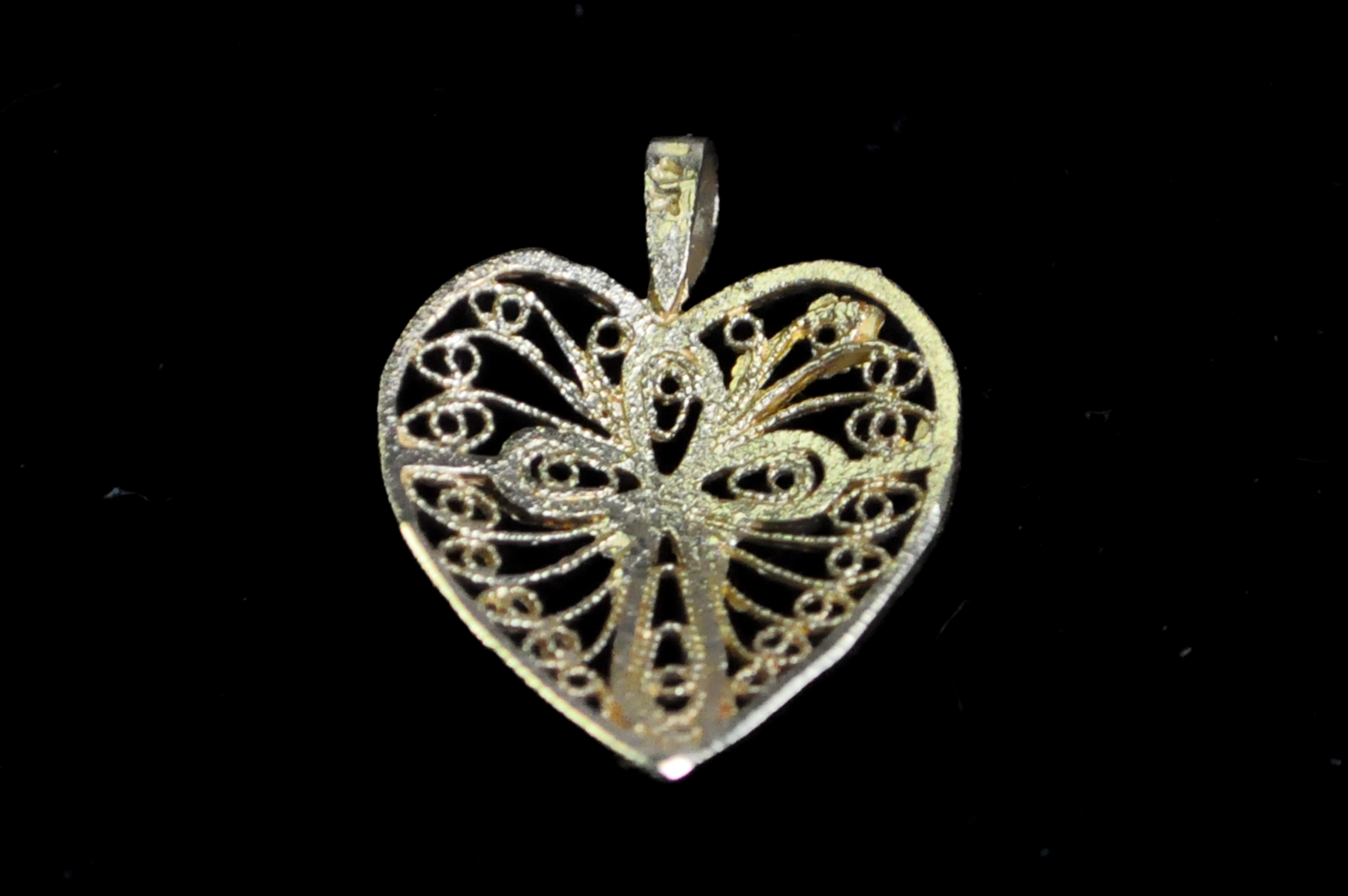 14k Yellow Gold Filigree Heart Pendant with Center Cross 1.4 Grams - Vintage-Style 14K Gold Heart & Cross Religious Charm