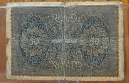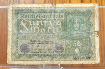 1919 50 Mark German Paper Note - 1919 Reichsbanknote 50 - Circulated Condition, Beautiful Design - Fifty Mark Note 1919