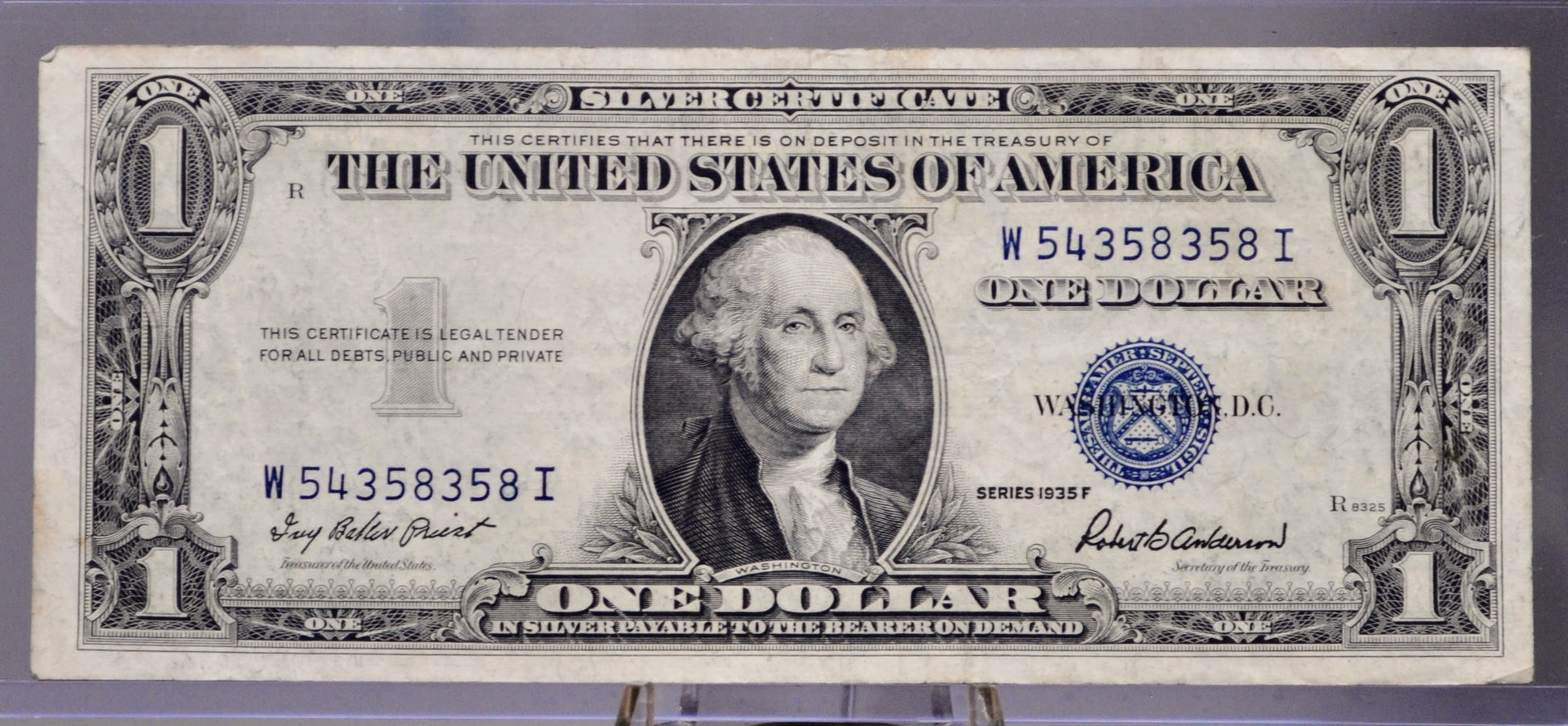 1935 F Silver Certificate 1 Dollar Banknote - Fancy Pattern Serial Number - 1935F Blue Seal Silver Cert Fancy Serial Note - Fr. 1615