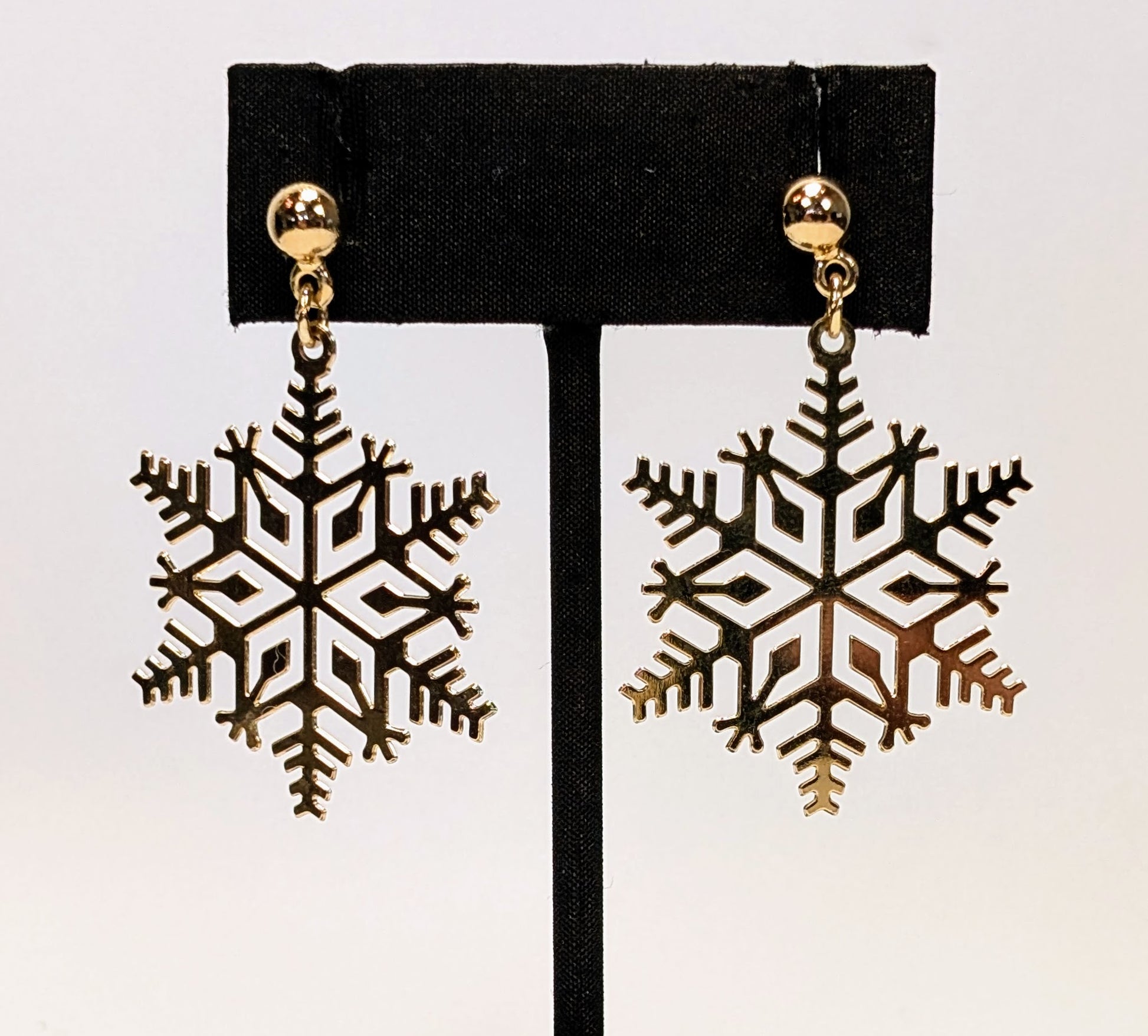 1977 Avon Goldtone Snowflakes Pierced Earrings in Box - New Old Stock (NOS) - Vintage Avon 70s Gold Snowflake Dangle Earrings