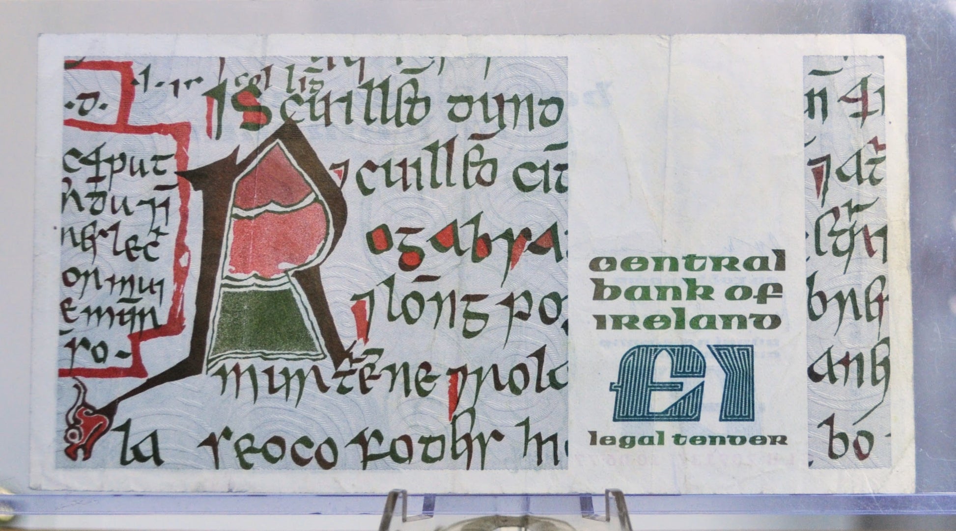 Lady Lavery banknotes were first issued in 1928 and circulated until they were replaced by the B Series notes starting in 1976. The figure of Lady Lavery was created to symbolize the Irish state, being adapted from a portrait of the Irishwoman Lady Hazel Lavery. Lady Lavery was prominently portrayed on the A Series of banknotes issued by the Central Bank of Ireland, and were replaced with B Series banknotes, with the 1 Pound note featuring Queen Maeb and being written entirely in Gaelic, starting in 1976. The first issue of these B Series notes was dated June 10th, 1977 (10.06.77). Although this new series featured a £100 note, this note was never put into circulation. Each denomination showcased a different figure from Irish history.