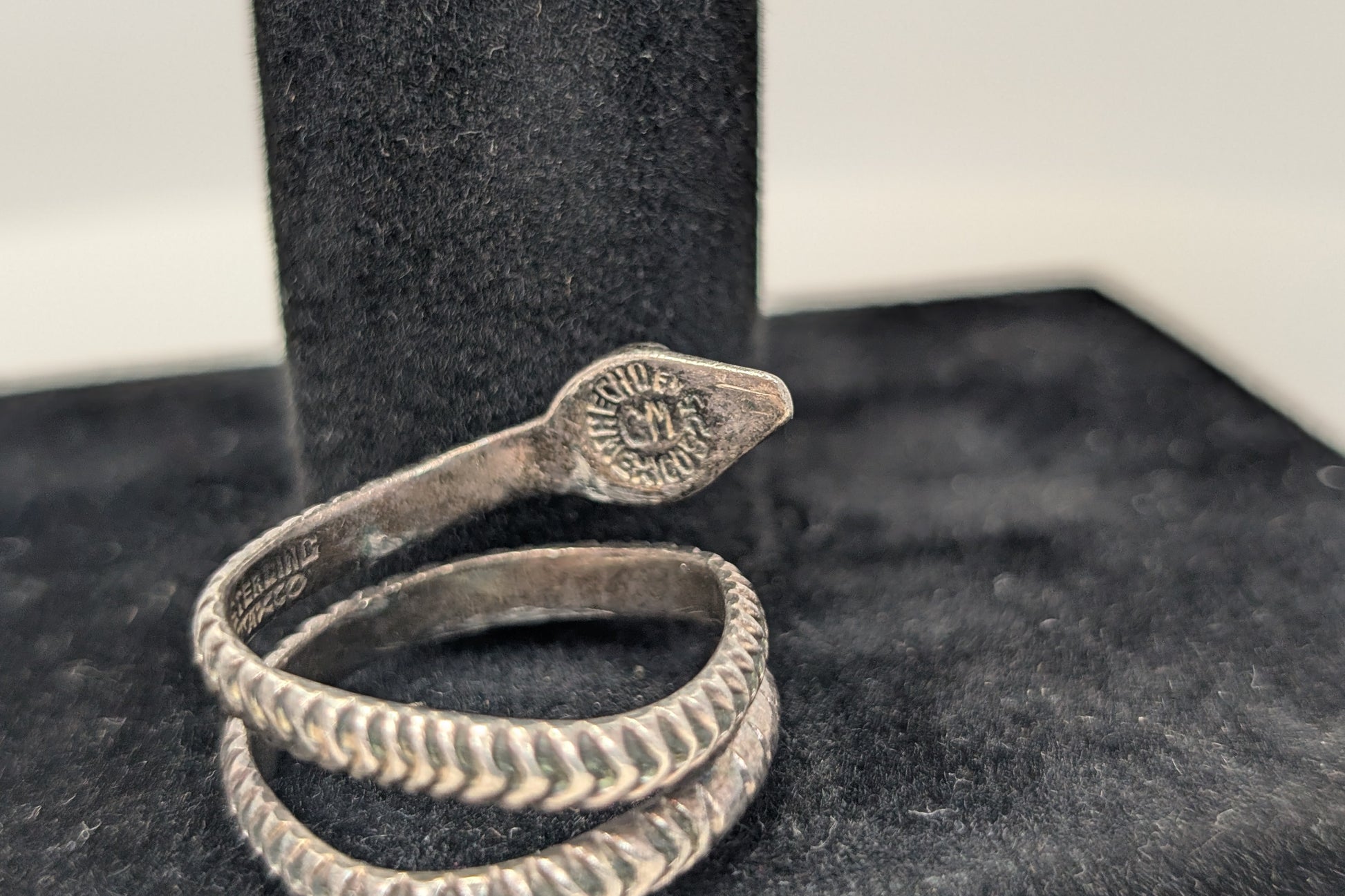 Sterling Silver Coiled Zircon Snake Ring - Size 9 - Stamped and Tested Sterling Silver - Coiled Zircon Serpent Ring