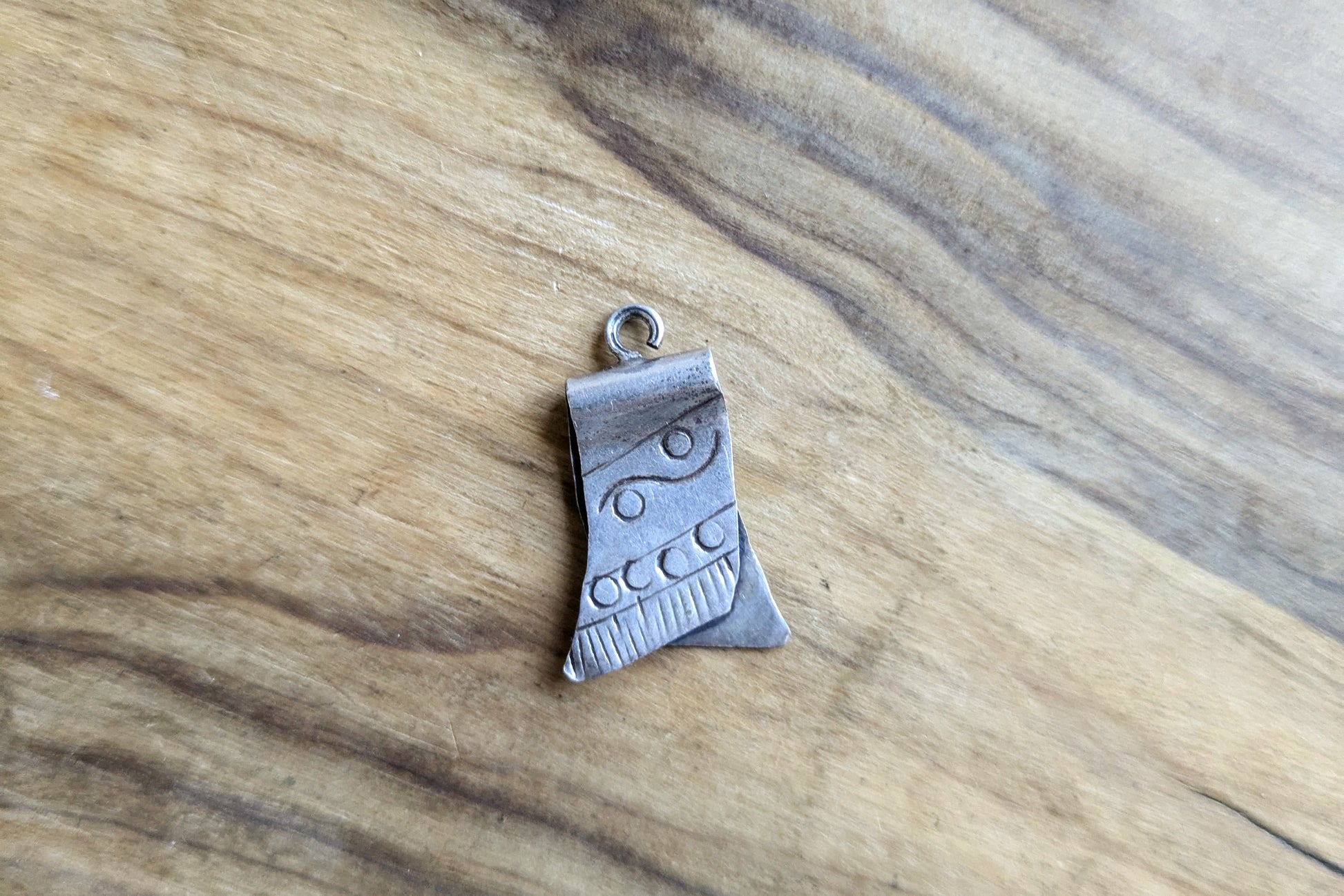 This listing is for the photographed Sterling Silver Mexican Poncho Charm. Beautiful handcrafted sterling silver Mexican poncho featuring well detailed and intricate designs. The loop of the charm is slightly broken with a bit more of an opening than you would like, yet still hangs and stays on a necklace/bracelet well. A great handcrafted piece for those interested or enamored with Mexican life and art.