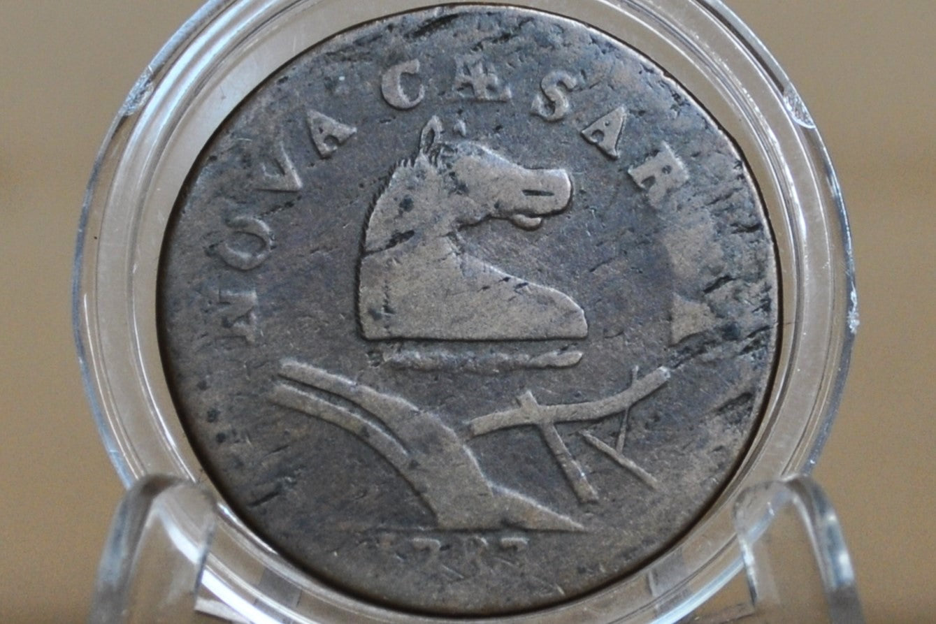 1787 New Jersey Copper - Affordable Coin - Rare US Coin 1 Cent 1787 Colonial Issue Cent, NJ Copper Horse's Head with Plow
