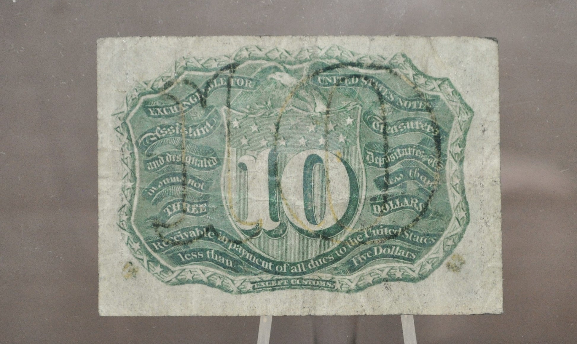 1863 2nd Issue 10 Cent Fractional Note - Good (G) Condition - "18-63" Surcharges on reverse - Second Issue Fractional Note Ten Cent- Fr.1245