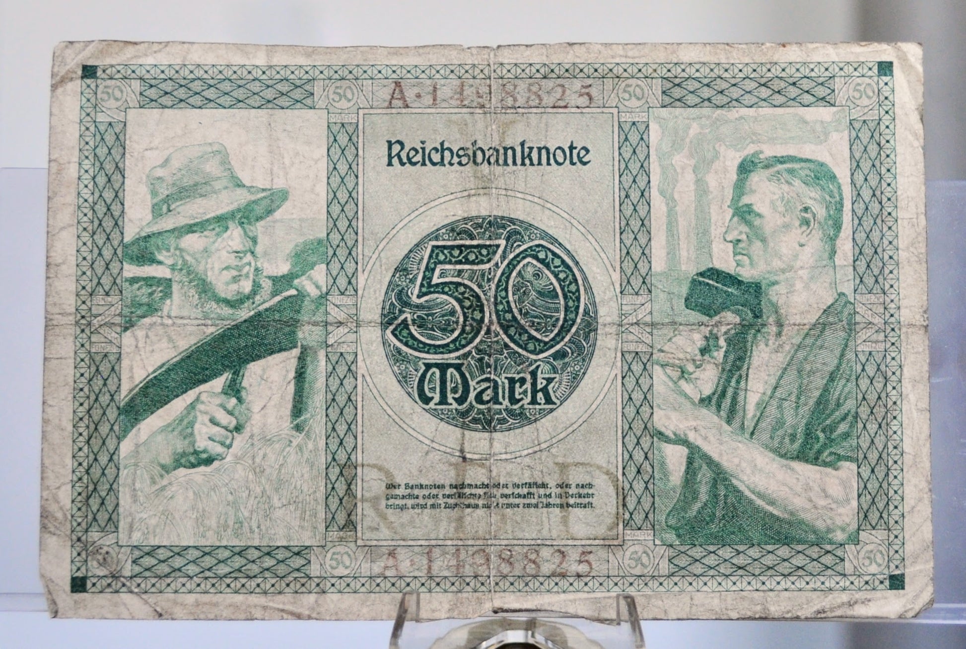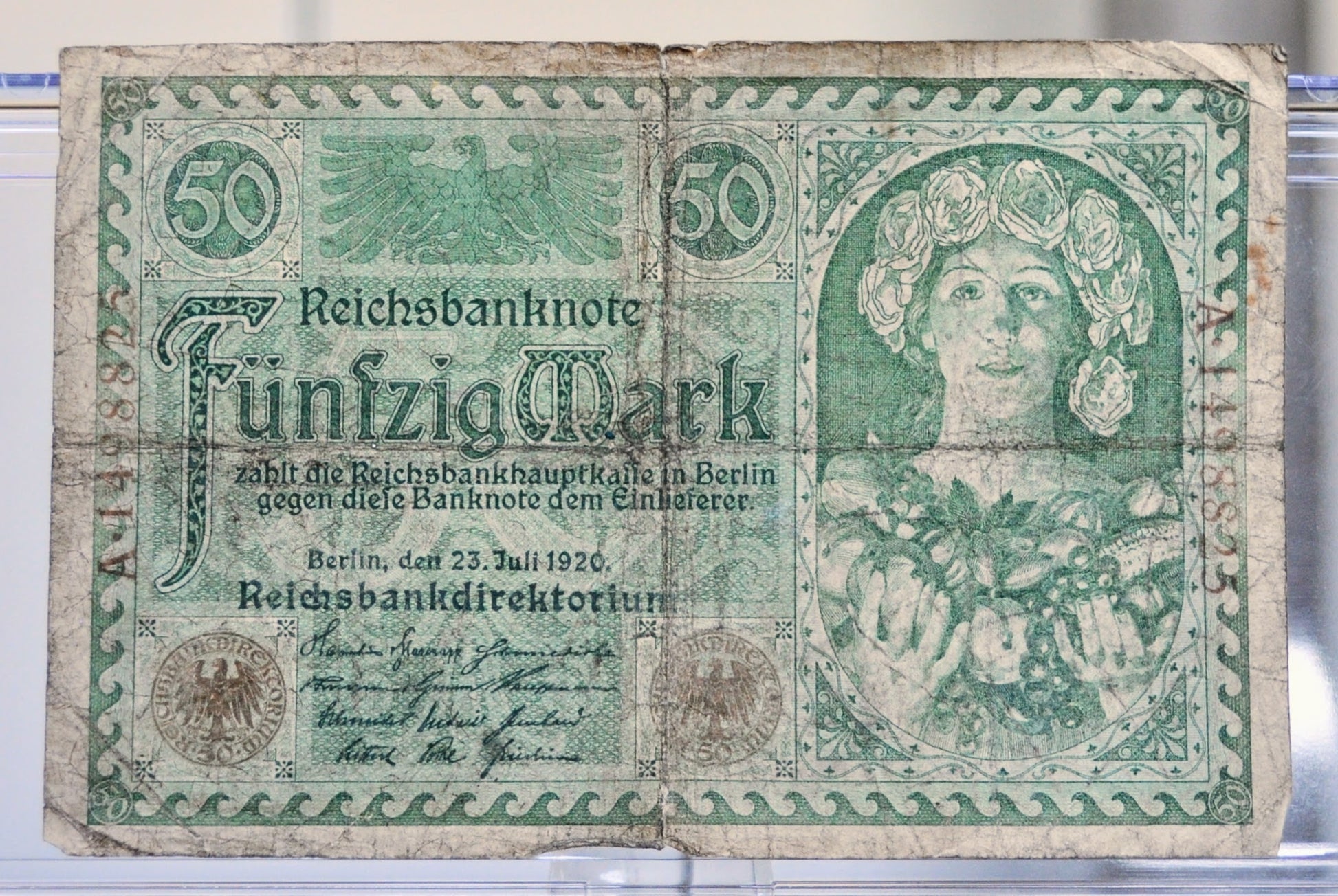 1920 Germany 50 Mark Banknote - Reichsbanknote - Stunning Green Design- WWI Era German Note - 1920 German Funfzig Fifty Mark Note - P#68