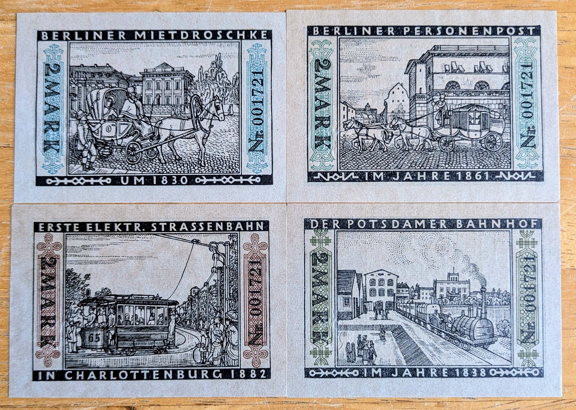 1922 Berlin Germany 2 Mark Notgeld Set - Set of 4, Transportation Series - German Emergency Currency - 1922 German Two Marks Note Set