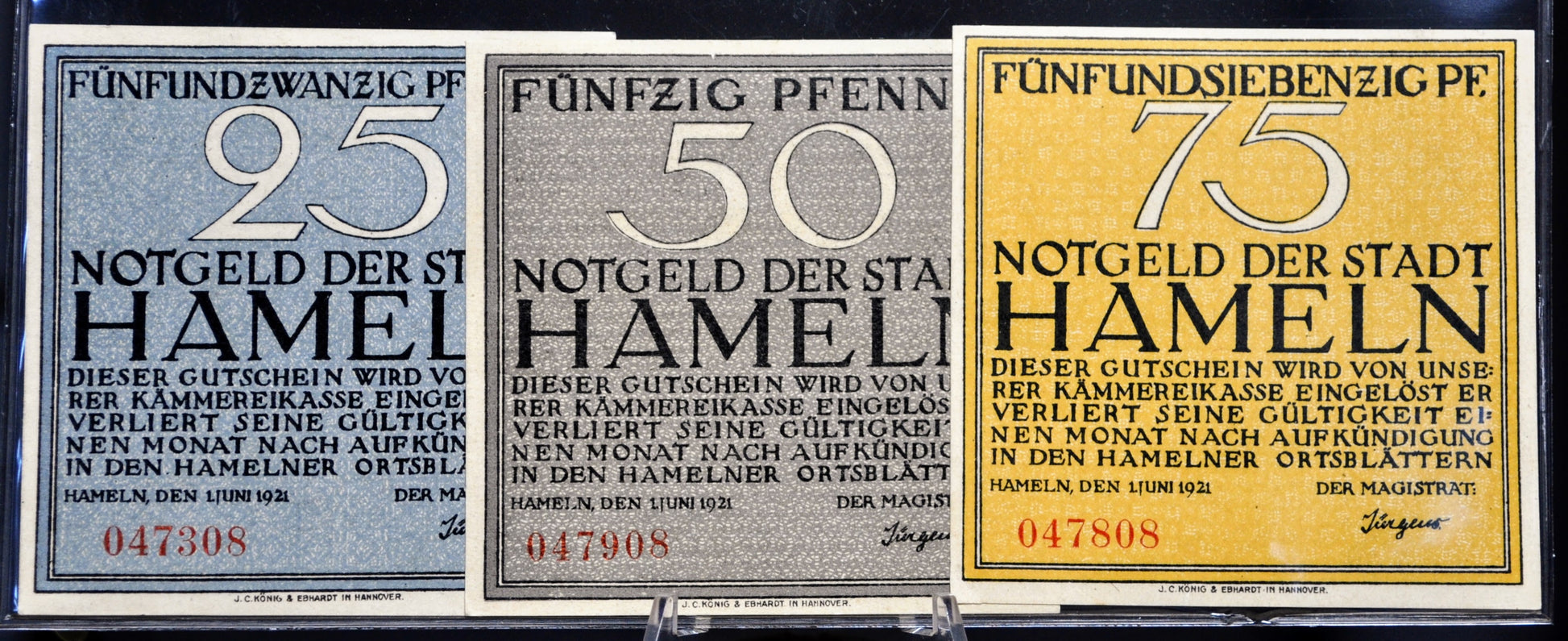 1921 Hameln Germany 25, 50, 75 Pfennig Notgeld Set - Near Complete Set - German Emergency Currency - 1921 German Pfennig Note Trio