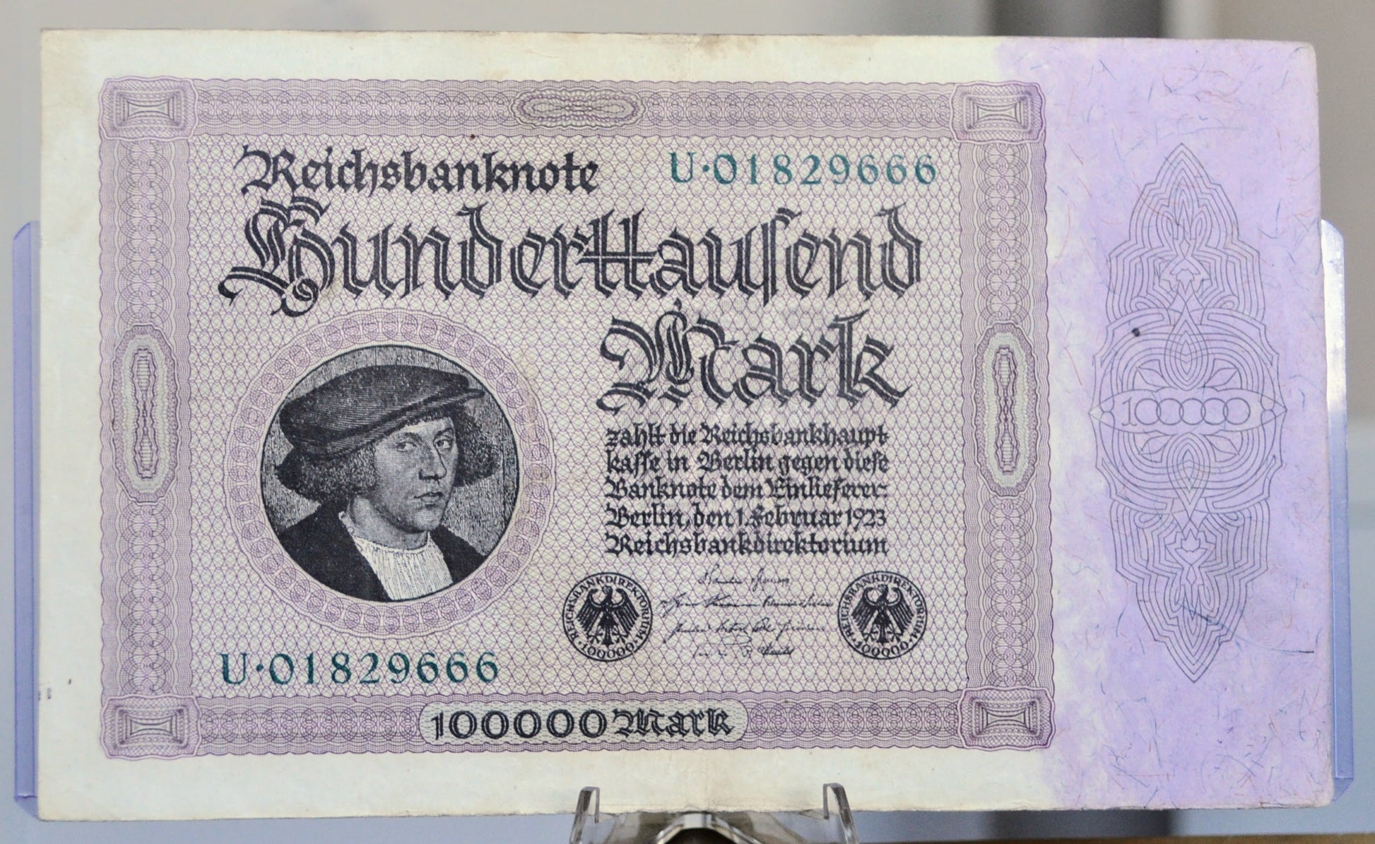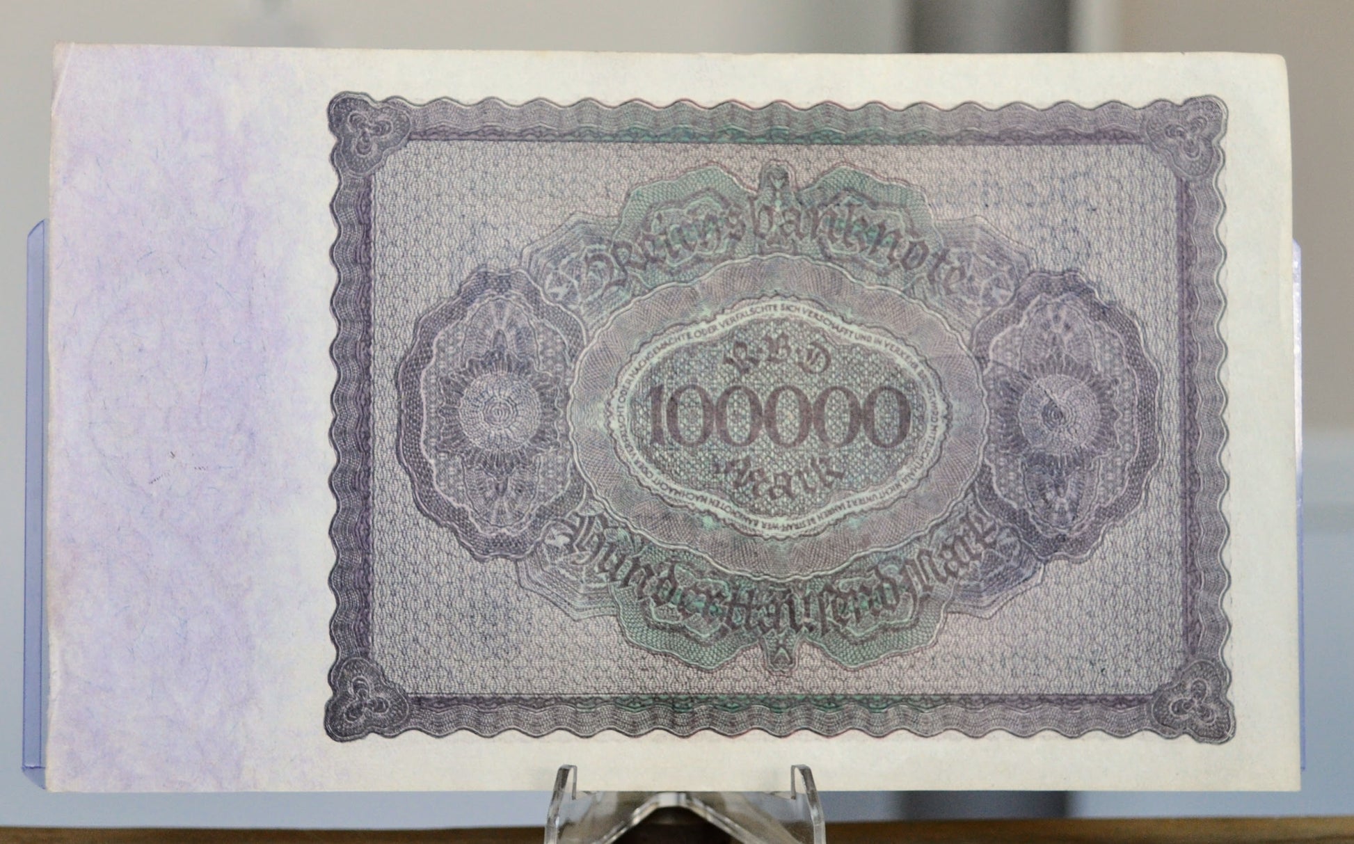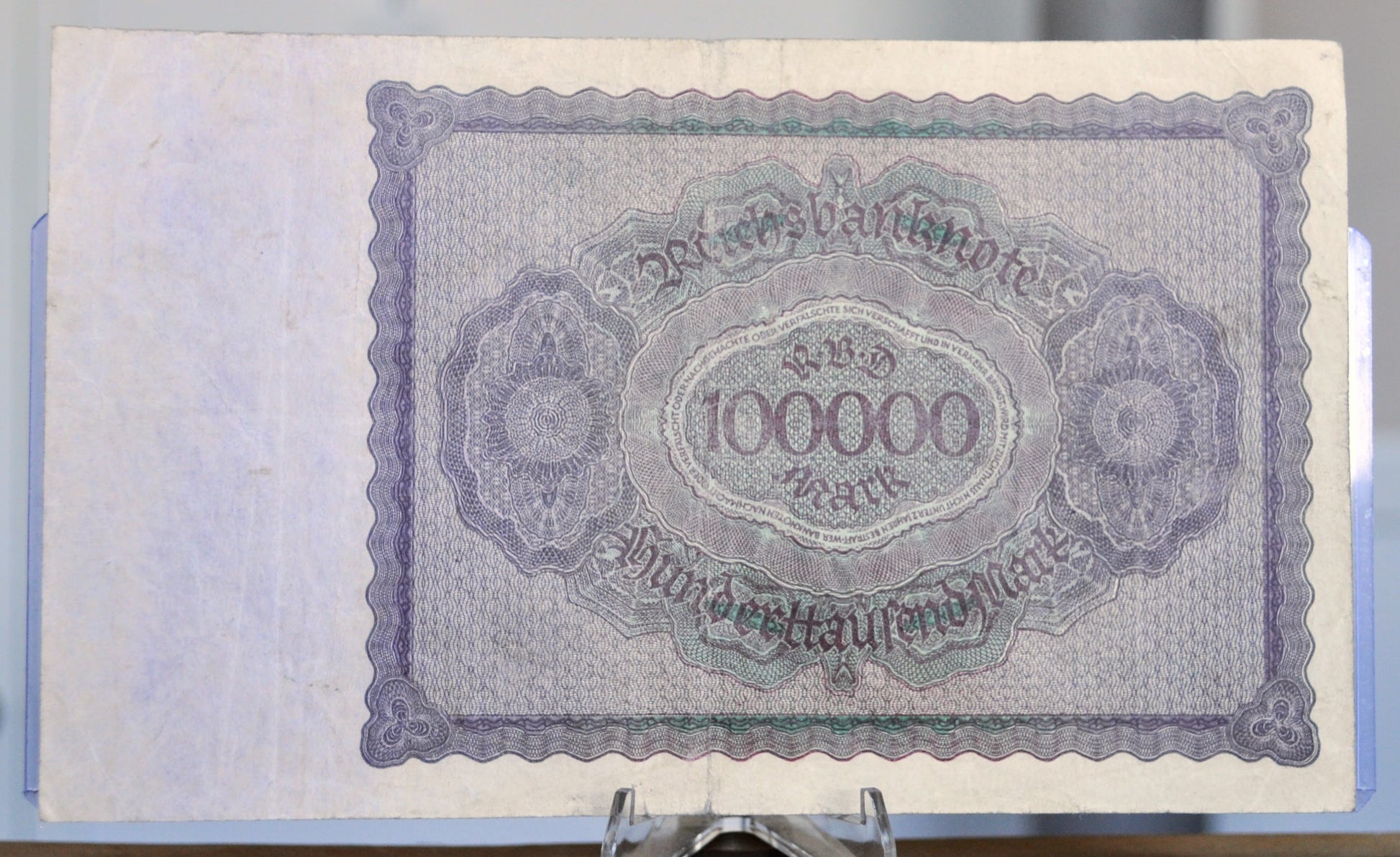 1923 Germany 100,000 Mark Banknote - Reichsbanknote - Inflation Note - 8-Digit Serial - 1923 One Hundred Thousand Marks Note - P#83a.2