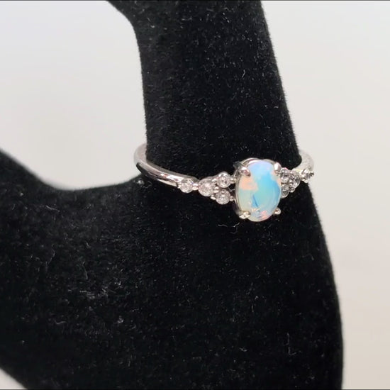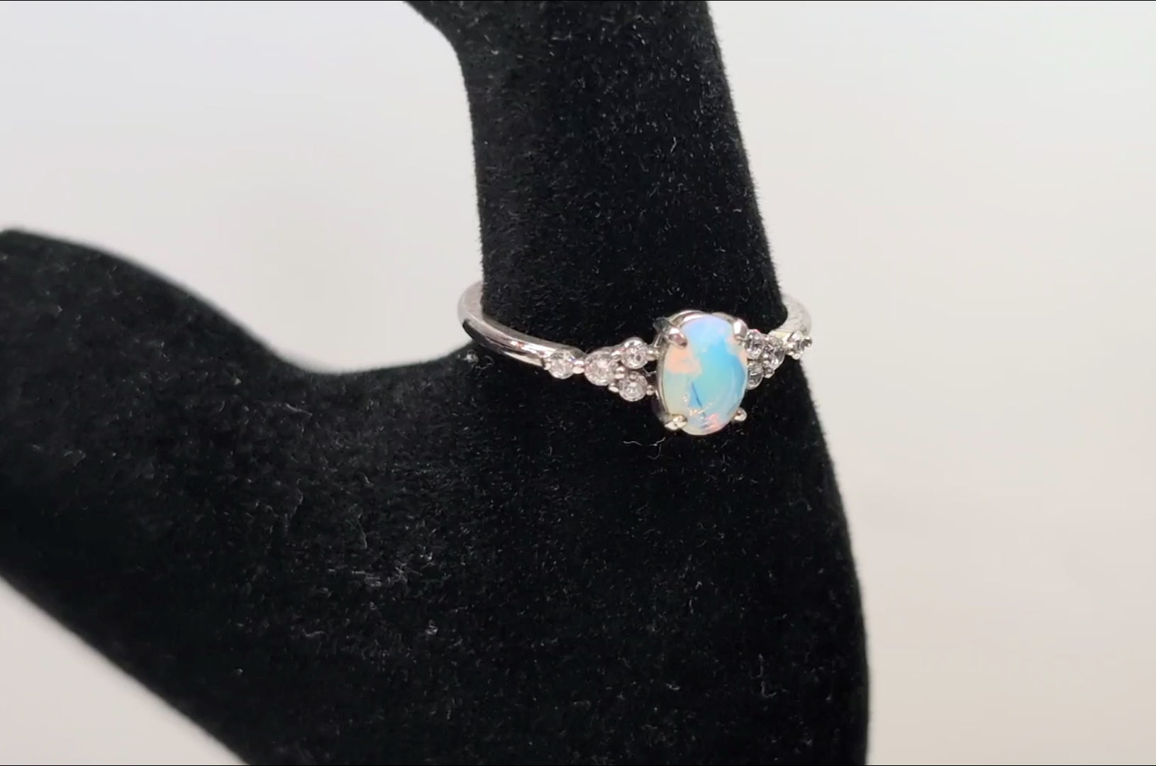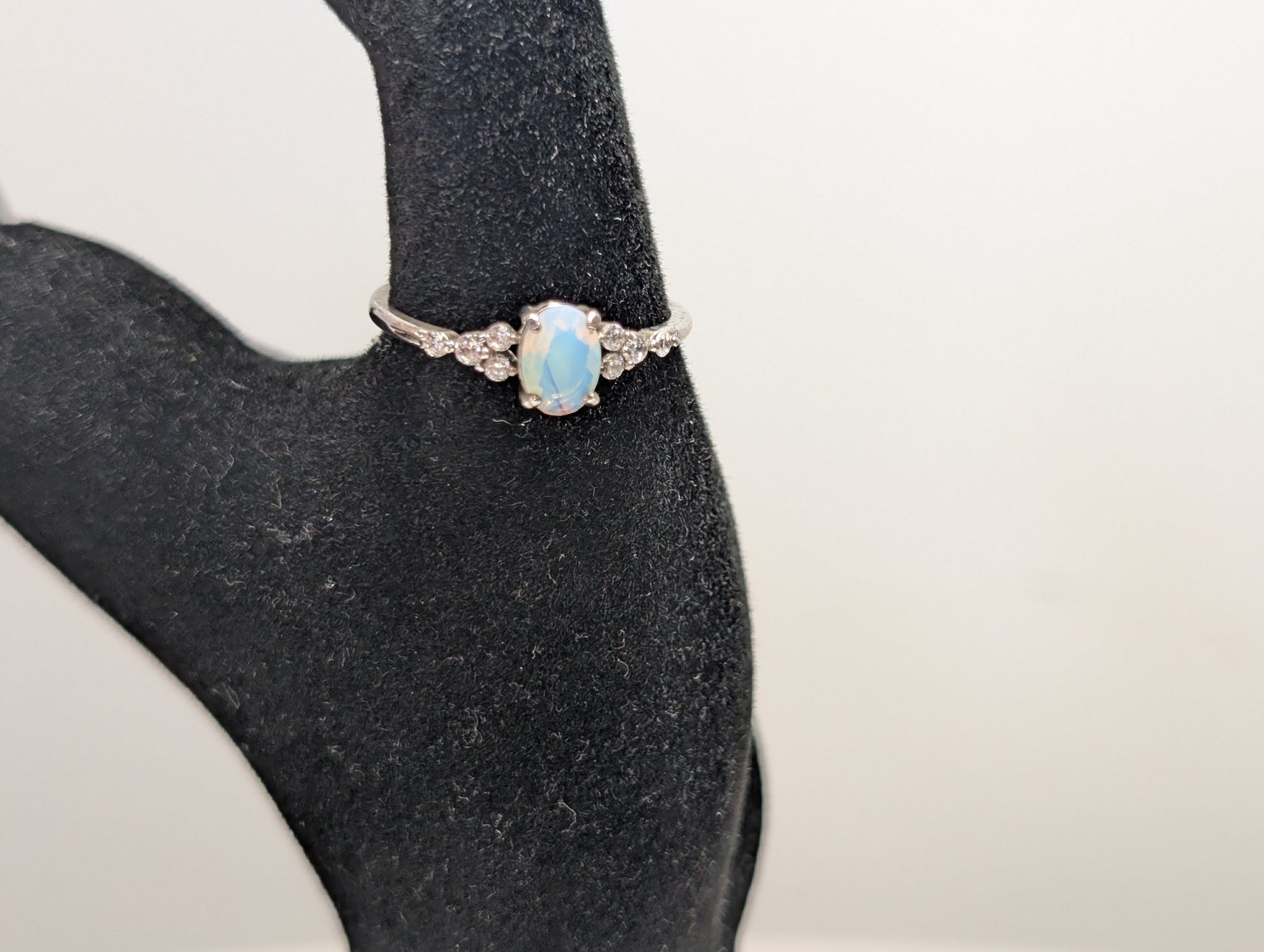 Ethiopian Welo Opal Ring - Size 9 - Stamped FJ - Rhinestone Studded Shoulders