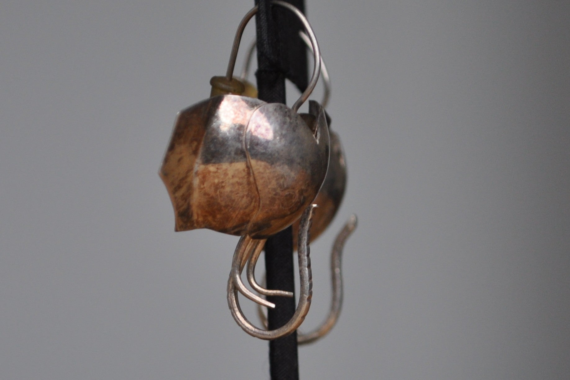 This listing is for the photographed Cute Art Deco Tusked Elephant Earrings. Extremely unique sterling silver earrings depicting tusked elephants in an art deco/minimalist style. One earring is tamped on the back with "925". Elephants are believed to be strong, wise, and a symbol of good luck, and in Hinduism and Buddhism they are associated with deities like Ganesh, and royalty. Intriguing set of elephant earrings to accentuate your earring style.