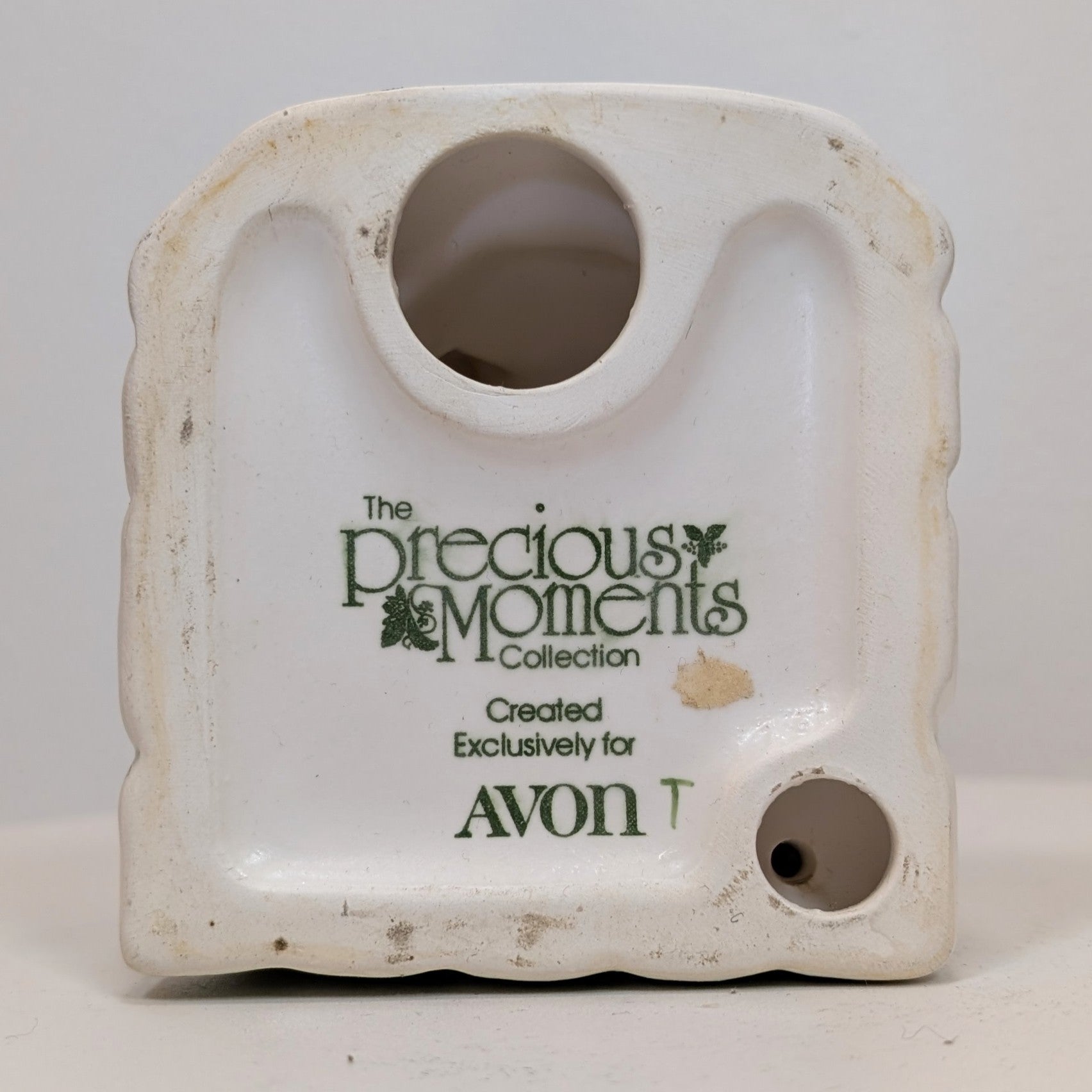 This figurine, titled "My First Call", is part of the "Cherished Moments" series, which was exclusive to those in the Avon Presidents club.