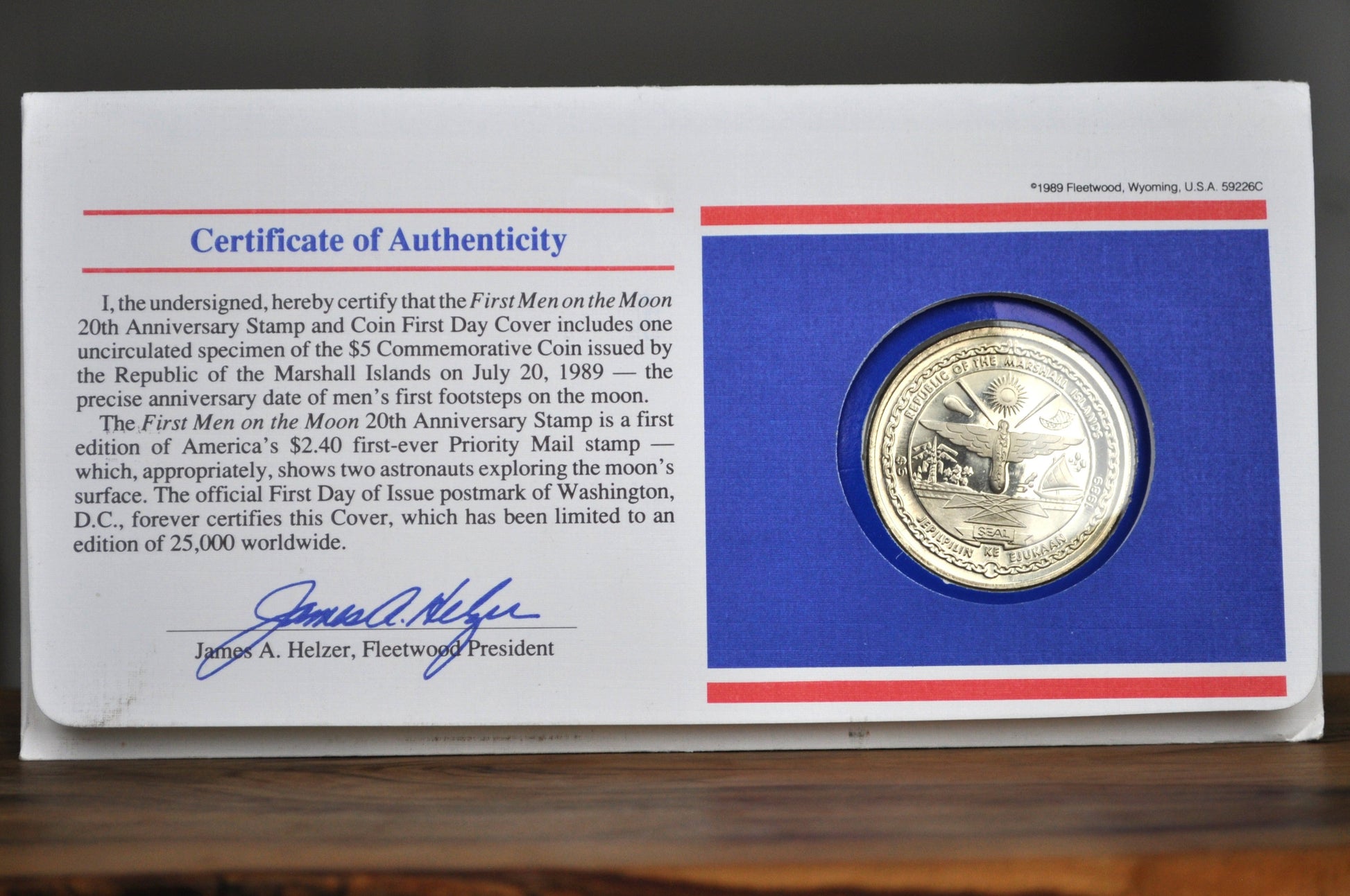 1989 Commemorative five dollar first men on the moon coin with certification. Thanks for stopping by Treasure Hunter Co!