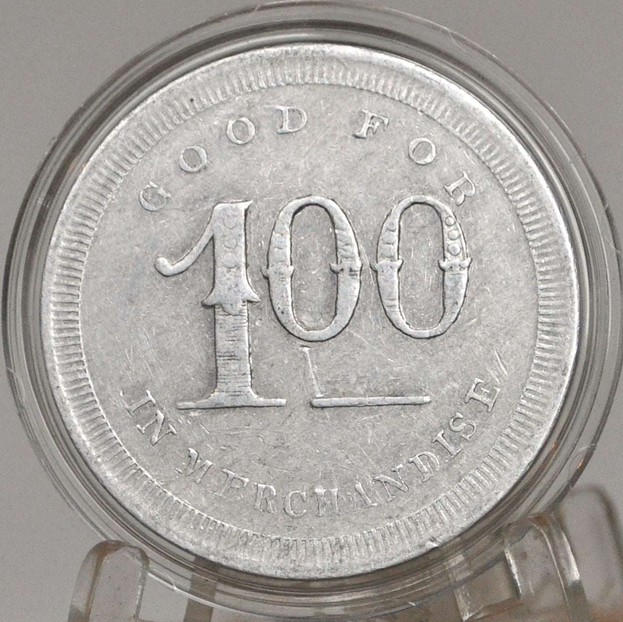 This listing is for a D. Nebbe The Big Daylight Token, Ogden, Iowa, One Dollar Trade. The Big Daylight was a general store in Ogden, Iowa. It operated from 1895-1944. This token was used as currency for merchandise within the store. Interesting Find!