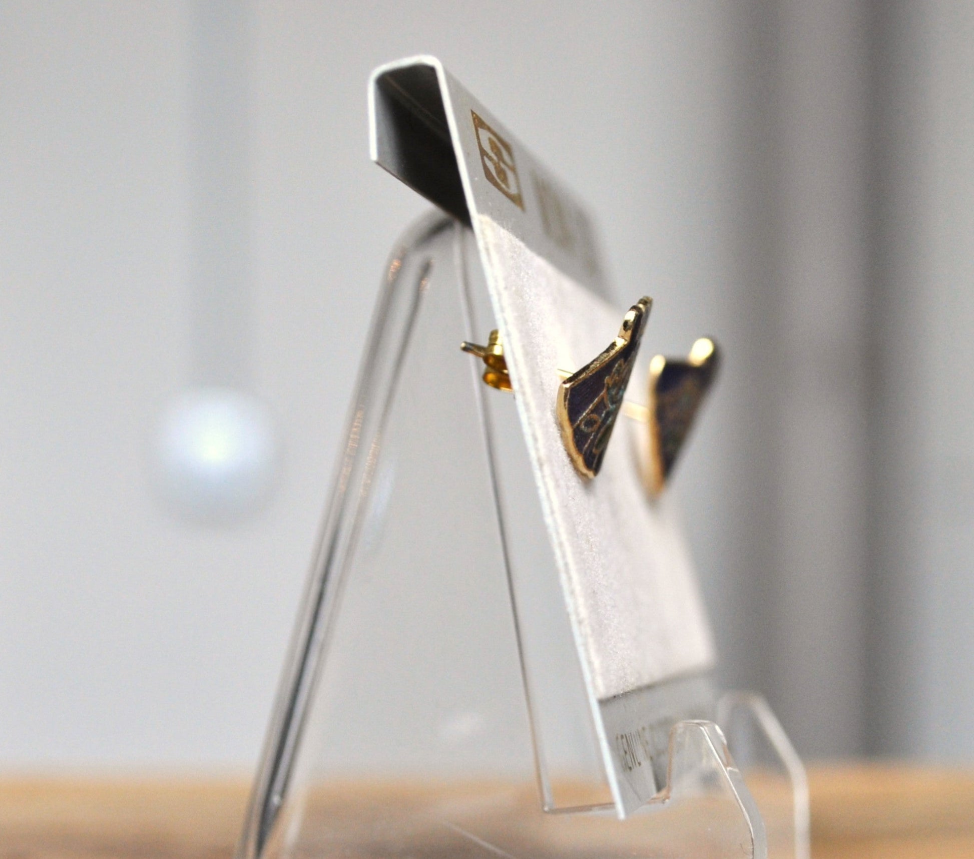 Vintage Mona So Genuine Cloisonne Asian Fan Earrings - Original Backing - Beautiful Genuine Cloisonne Stud Earrings!