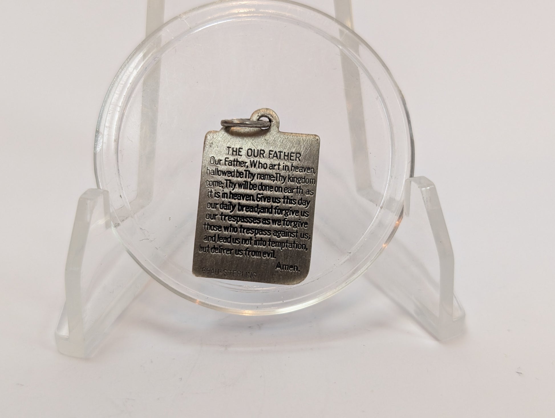 This listing is for the photographed Silver Holy Bible Lords Prayer Charm. Great sterling silver charm depicting the Holy Bible with the Lords Prayer found in the Gospels of Matthew and Luke located on the back. Below the prayer is stamped "Beau-Sterling". Great charm to support your faith!